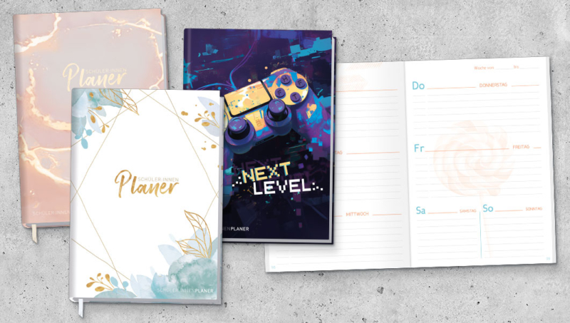 Das Premium-Hardcover mit Gummiband und Wire-O-Bindung hält auch dem wildesten Schulalltag stand. Eine Woche pro Doppelseite gibt genug Platz für Hausaufgaben, Termine und To-dos.