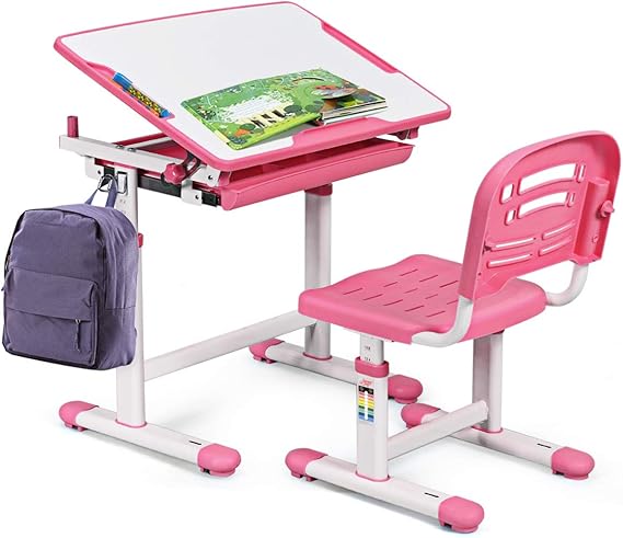 Alter, dieser Kinderschreibtisch ist ja der Hammer! Mit coolem Astronauten-Muster und komplett höhenverstellbar - passt von 3 bis 18 Jahren. Der Stuhl hat eine ergonomische Doppel-Rückenlehne, die sich perfekt an den Kinderrücken anpasst. Aus umweltfreundlicher E1-Platte und stabilem Stahlrahmen - hält bis zu 300 kg aus! Maße: Schreibtisch ca. 111 x 80 x 54 cm, Stuhl ca. 84 x 42 x 37 cm. Mit breiter Schreibfläche, Bücherständer und großer Schublade für all die Schulmaterialien. Die Anti-Rutsch-Füße schützen deinen Boden. Einfache Montage mit Anleitung. Das perfekte Geschenk für kleine Entdecker - macht Lernen zum Abenteuer!