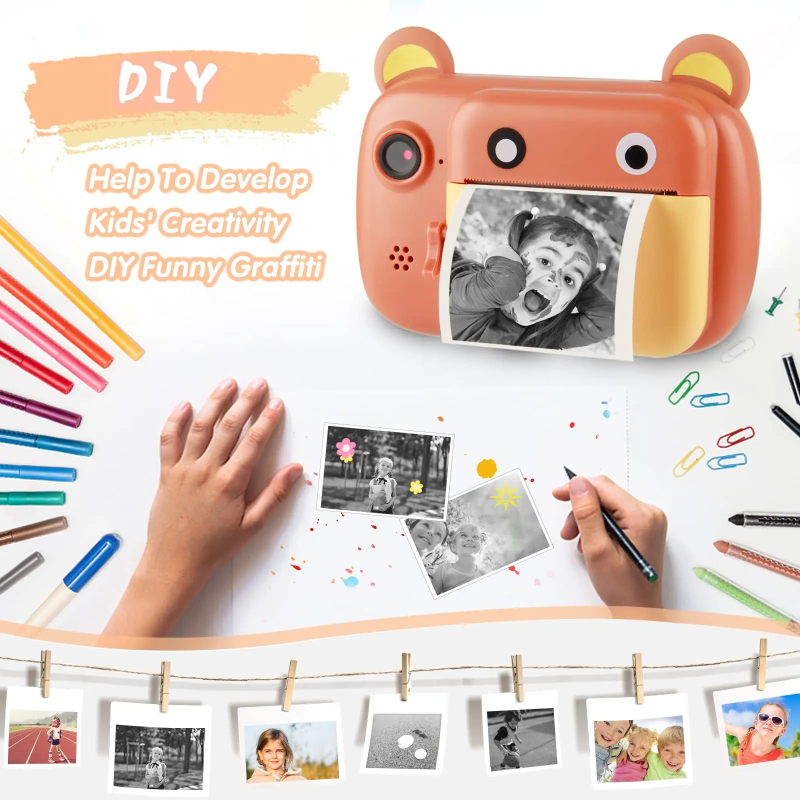 Die ultimative Spaß-Kamera für kleine Fotografen! Diese coole Sofortbild-Kamera druckt deine Fotos sofort aus - ganz ohne Tinte! Mit thermischer Drucktechnologie entstehen in Sekunden schwarz-weiße Erinnerungen. Das 2,4 Zoll Display zeigt alle Bilder super an und die 1080P HD Videoaufnahme macht auch Filme möglich. Mit coolen Filtern, Spielen und sogar MP3-Funktion - hier gibt's keine Langeweile! Perfekt für Kinder von 3-12 Jahren, einfach zu bedienen und robust genug für kleine Hände. Ob Geburtstag, Urlaub oder einfach so - diese Kamera fördert Kreativität und macht riesig Spaß. Einfach einschalten und losknipsen - die Fotos kommen sofort raus!