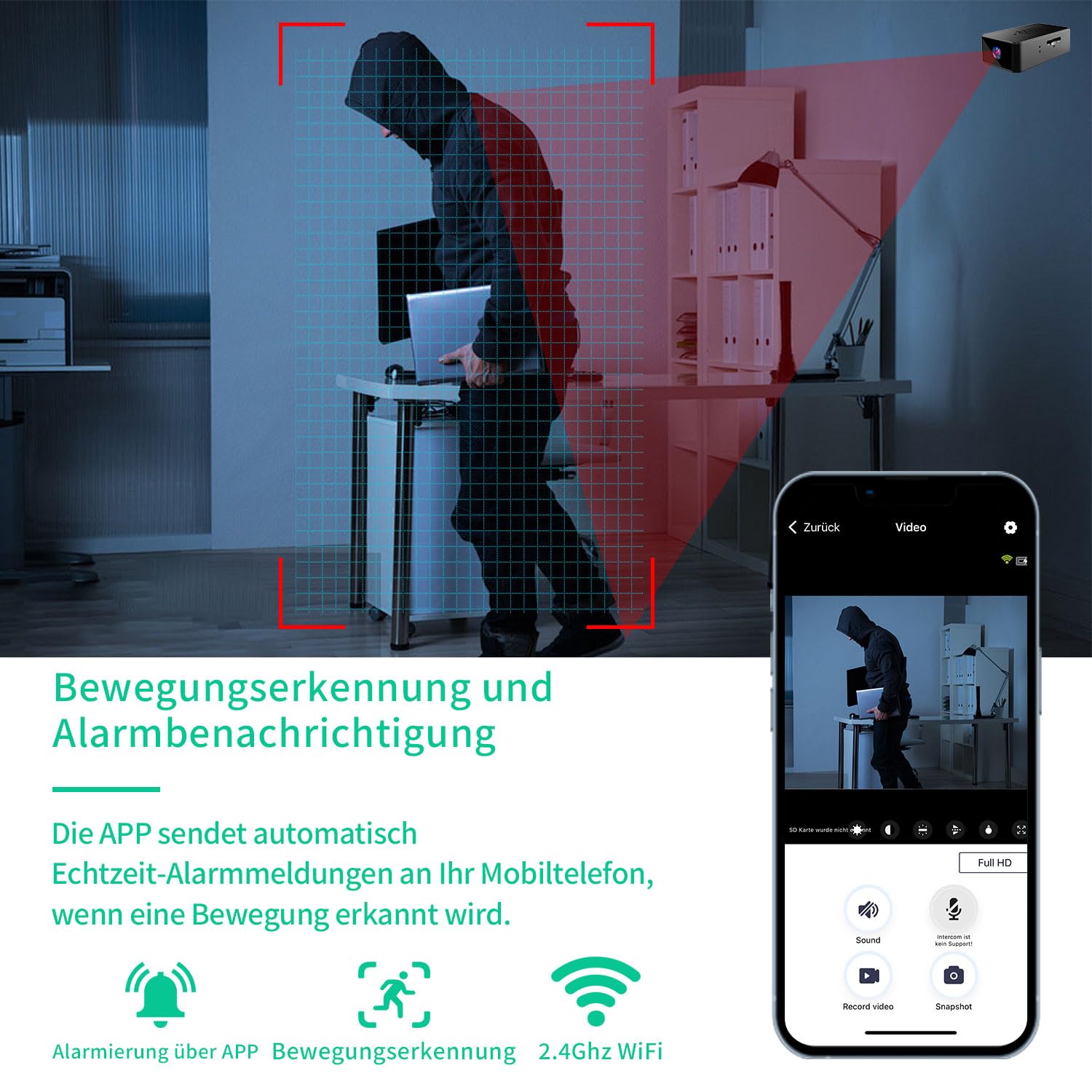 • Mini Überwachungskamera 1080P HD - WLAN Kamera Mit App Steuerung