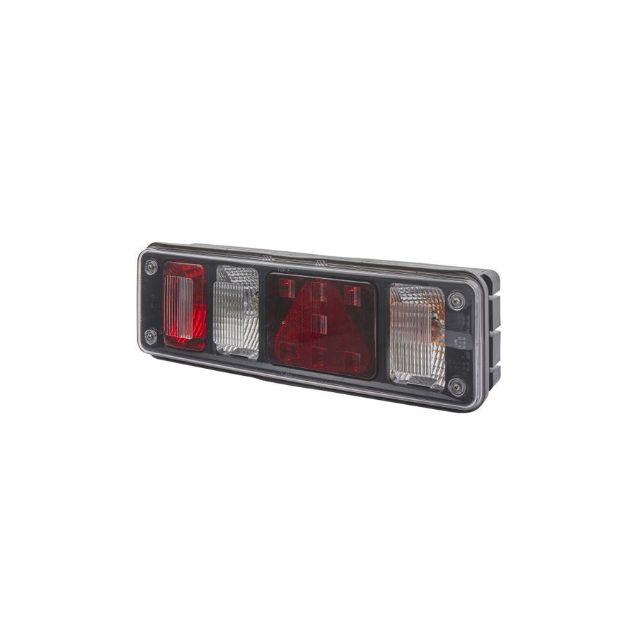 Sicherheit für deinen Anhänger! Diese HELLA Heckleuchte mit 7 Funktionen ist genau das Richtige für jeden Trailereinsatz. Enthält Schlusslicht, Bremslicht, Blinklicht, Nebelschlusslicht, Rückfahrlicht, Seitenmarkierungslicht und Dreieckrückstrahler in einem. Mit ECE-Zulassung und ADR/GGVS-Geprüft - also absolut verkehrssicher. Für waagerechten Anbau an Anhängern (rechts). Aus schwarzem Kunststoffgehäuse, wetterfest mit Schutzart IP5K4K. Mit Schwingungsdämpfung für lange Haltbarkeit auch auf holprigen Straßen. Kabelverschraubung für 6-adrige Leitung inklusive. Maße: 440mm Länge, 82mm Höhe. Einfach montieren und von professioneller HELLA Qualität profitieren. Ob für den Pferdeanhänger, Wohnwagen oder Transporter - mit dieser Leuchte bist du immer sicher unterwegs!