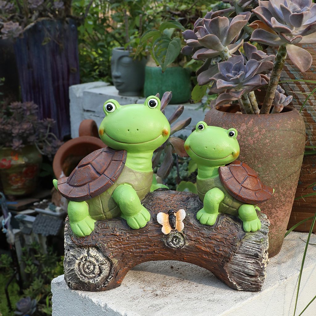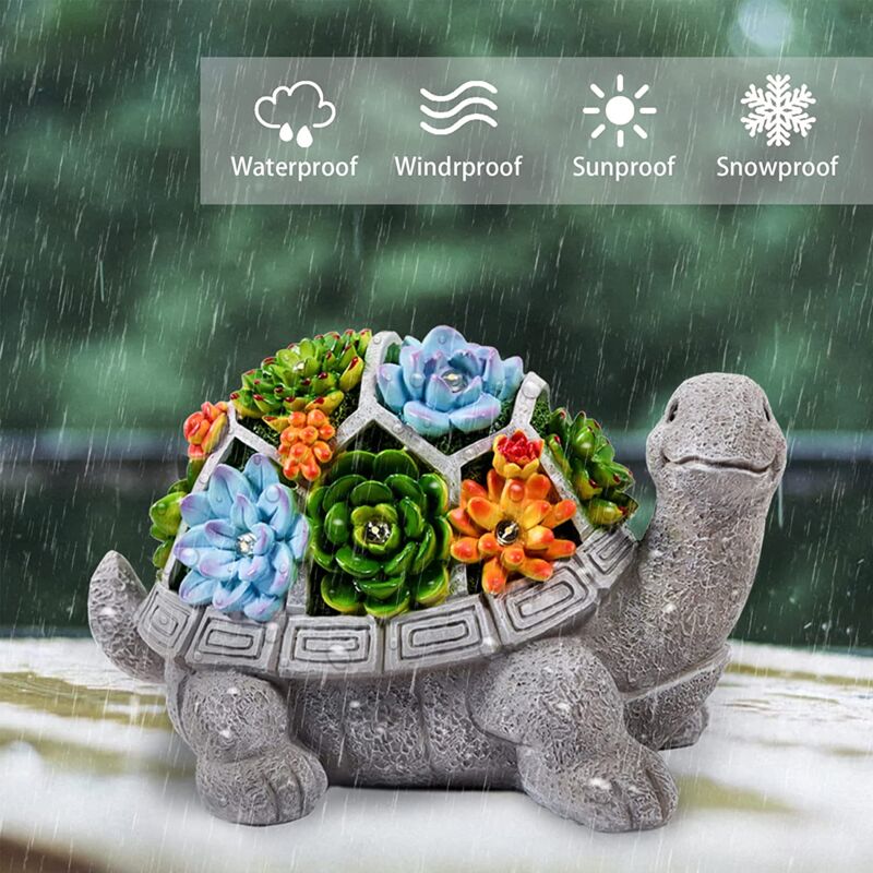HIAME Solar Garten Deko Schildkröten Statue - Harz Figuren Mit Solarlicht