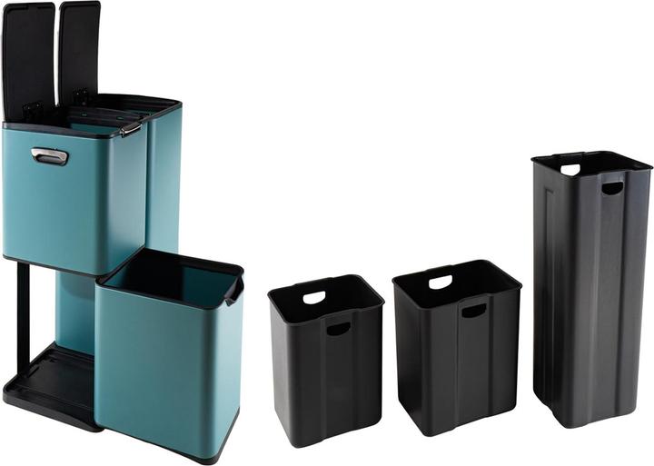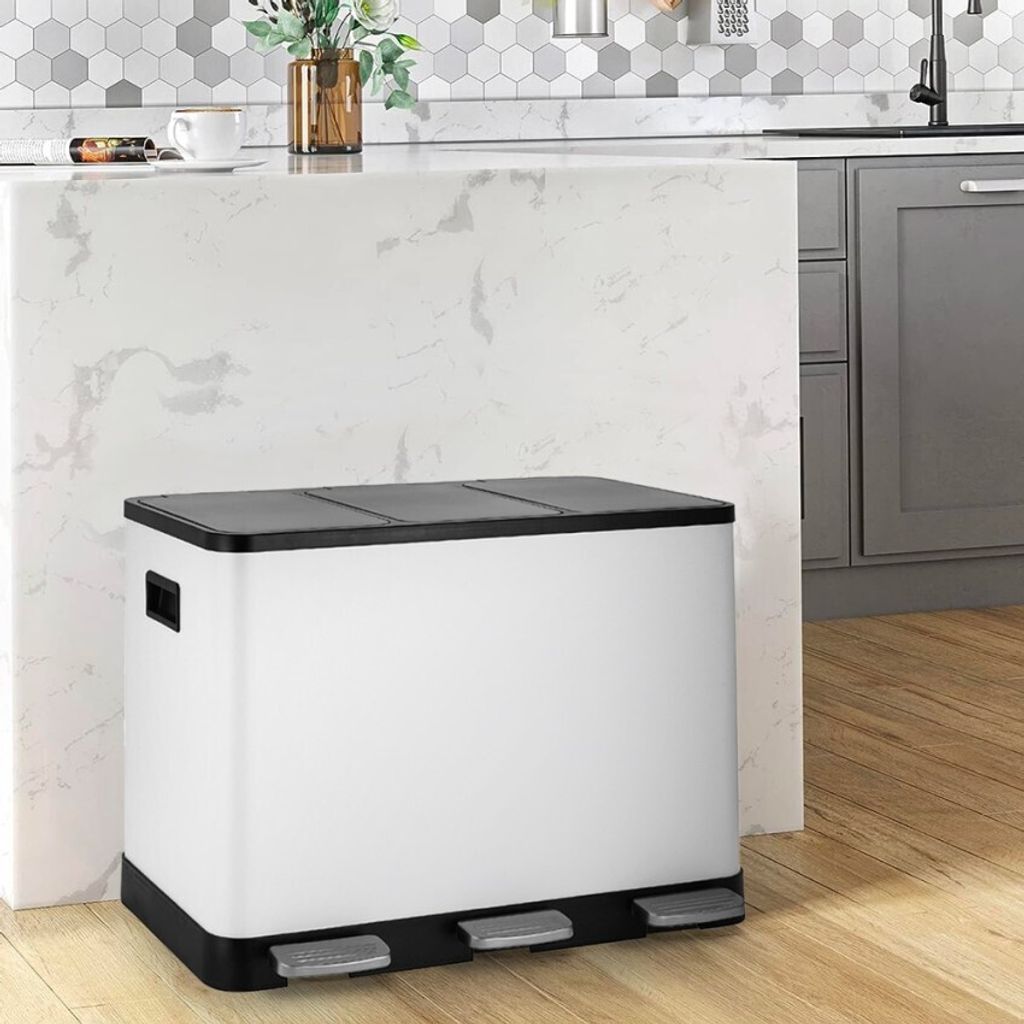Schluss mit dem Müll-Chaos in der Küche! Dieses HTI living Mülltrennsystem bringt endlich Ordnung in deine Abfallentsorgung. Mit drei praktischen Behältern - einem großen 30-Liter-Treteimer unten, einer 13-Liter-Knopfdruck-Box oben und einer 17-Liter-Schublade in der Mitte - hast du für jeden Müll den richtigen Platz. Aus robustem Edelstahl gefertigt, sieht der Mülleimer nicht nur super modern aus, sondern ist auch leicht zu reinigen. Die Maße von 46,5 x 75 x 39 cm machen ihn perfekt für kleinere Küchen, aber mit insgesamt 60 Litern Fassungsvermögen ist trotzdem genug Platz für alles. Einfach den Fußhebel treten, und der Hauptbehälter öffnet sich. Die Inneneimer aus Kunststoff sind alle herausnehmbar, sodass die Reinigung zum Kinderspiel wird. Endlich eine praktische Lösung für umweltbewusste Mülltrennung!