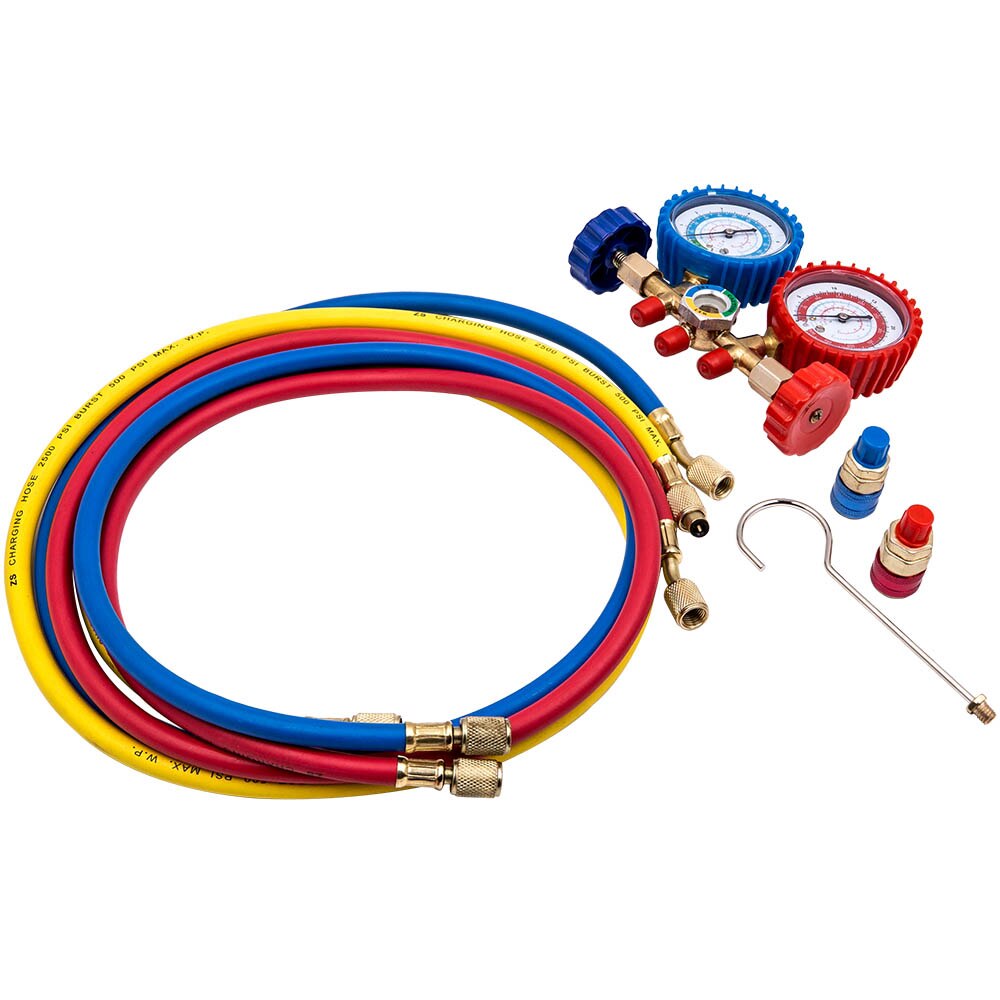 Für alle Kälte-Techniker! Dieses professionelle Manometer-Set ist perfekt für HVAC-Arbeiten. Mit 3 farbcodierten Manometern: Rot, Blau, Gelb für verschiedene Kältemittel. Schläuche halten bis 800 PSI Arbeitsdruck (4000 PSI Berstdruck). Aus Messinggehäuse mit 4-Zoll-Ladeschläuchen. Zugelassen für R134A, R410A, R22, R12 Kältemittel. Passt für Standard 1/4 Zoll SAE Anschlüsse. Mit Kugelhähnen für präzise Steuerung. Perfekt für Klimaanlagen, Kühlschränke oder andere Kälteanlagen. Einfach anschließen, Druck messen, Kältemittel füllen - mehr Professionalität geht nicht! Alles dabei für perfekte Wartung und Reparatur.