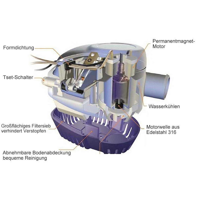 Sicherheit für dein Boot! Diese vollautomatische Bilgenpumpe HYBP2 G1100-02 in 24V Ausführung hält dein Boot trocken und sicher. Mit integriertem Schwimmerschalter schaltet sich die Pumpe automatisch ein, sobald Wasserstand erkannt wird - kein separater Schalter nötig! Die kompakte Bauweise spart Platz und die robuste Konstruktion aus technischen Kunststoffen übersteht auch raue Seebedingungen. Mit einer Pumpenleistung von 2,84 m³/h und halboffenem Laufrad bewältigt sie zuverlässig das anfallende Bilgenwasser. Perfekt für Yachten, Fischerboote, Wohnmobile und andere Marineanwendungen. Der gewellte Schlauch mit Spiraldesign ist knickfest und sorgt für eine stabile Durchflussrate. Wichtig: Denke an einen Wassereinlassfilter, um das Eindringen von Fremdkörpern zu verhindern. So bist du immer auf der sicheren Seite, egal ob auf See oder im Hafen. Dein Boot verdient die beste Pflege!