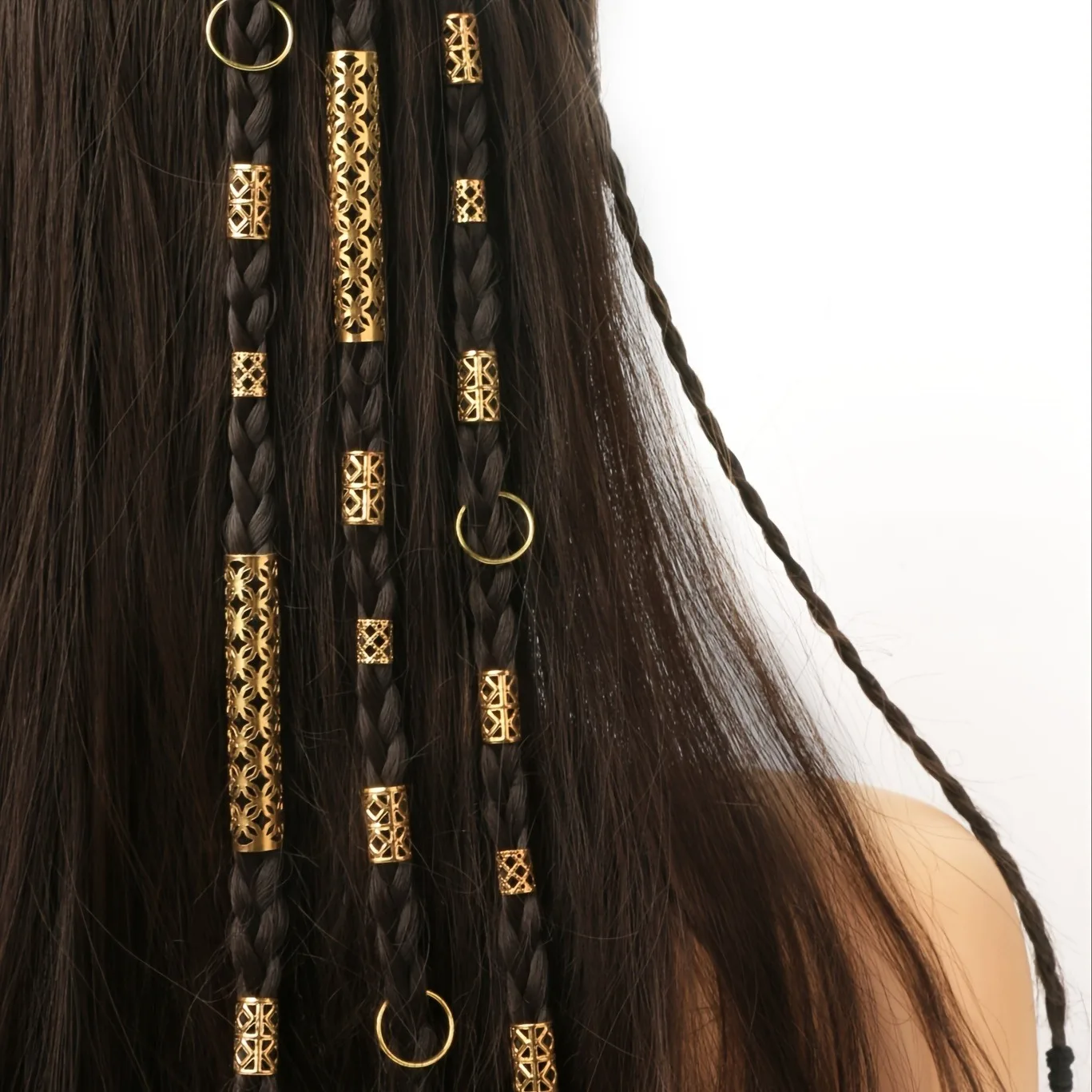 Hey, willst du deine Frisur mal so richtig aufpeppen? Mit diesen 62 goldenen Haarschmuck-Spiralen wird jedes Haar zum absoluten Hingucker! Egal ob du Zöpfe, Dreads oder einfach nur lange Haare hast - diese coolen Clips sehen einfach überall gut aus. Aus hochwertigem Metall gefertigt und vergoldet, sind sie super flexibel, brechen nicht und verblassen nicht. Du kannst eine oder mehrere gleichzeitig verwenden und damit die verschiedensten Styles kreieren - von rockig bis elegant ist alles möglich! Und das Beste: Die Teile sind nicht nur für Haare geeignet, sondern du kannst daraus auch Halsketten, Armbänder, Ohrringe oder Stirnbänder machen. Total vielseitig also! Perfekt als Geschenk für Geburtstage, Weihnachten, Halloween oder einfach so. Ob für Männer, Frauen oder Kinder - mit diesem Set wird jeder zum Style-König! Einfach reinschieben, festdrehen und sich über den neuen Look freuen - deine Frisur war noch nie so individuell!