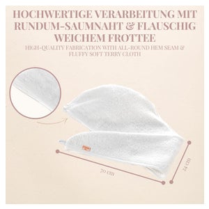 Dieser Haarturban ist ein echter Game-Changer für die Haarpflege! Aus super saugstarker Mikrofaser die die Feuchtigkeit viel schneller aufnimmt als normale Handtücher.\n\nEinfach anzuwenden: Handtuch ums Haar wickeln, ein paar Mal drehen, durch den Loop ziehen und mit dem praktischen Knopf fixieren - schon sitzt es bombenfest!\n\nDas süße Katzenmuster in Weiß sieht nicht nur niedlich aus, sondern ist auch alltagstauglich. Während das Haar trocknet kannst du in Ruhe schminken, frühstücken oder entspannen.\n\nPerfekt für alle Haartypen - ob lockig, glatt, kurz oder lang. Schont die Haarstruktur und verhindert Hitzeschäden durch zu langes Föhnen.\n\nLeicht und bequem zu tragen, rutscht nicht und tropft nicht. Endlich keine nassen Haare mehr im Nacken!\n\nEin Must-Have für jeden der Wert auf gesunde, schöne Haare legt. Macht das Haaretrocknen zur entspannten Angelegenheit!