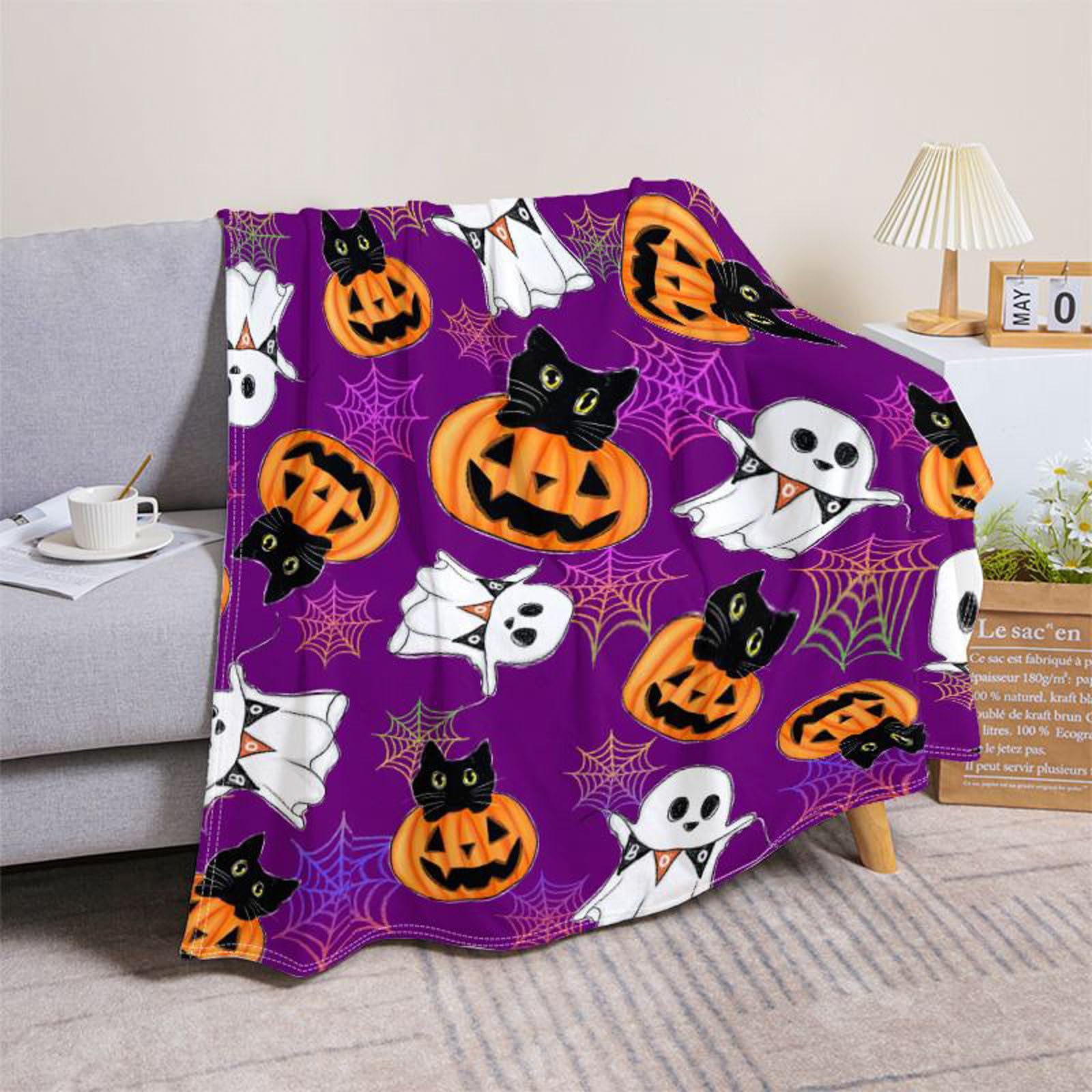 Halloween Decke 150x200cm Mit Kürbis Geister Motiv - Kuscheliges Geschenkset Mit Tasche