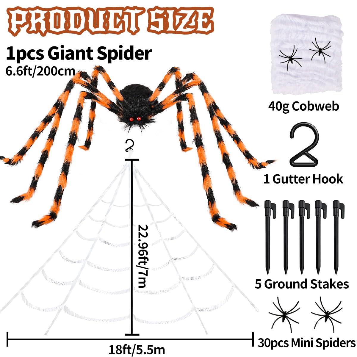 Verwandle dein Zuhause in eine gruselige Horror-Kulisse! Dieses Mega-Halloween-Set enthält alles für den perfekten Gruselfaktor: Ein riesiges 7m Spinnennetz, eine haarige 2m Riesen-Spinne mit leuchtend roten Augen, 30 kleine Spinnen und dehnbare Spinnweben, die bis zu 300m² abdecken. Einfach aufzubauen - stecke die Haken in den Boden und befestige das Netz an Bäumen, Wänden oder der Dachrinne. Die beweglichen Beine der Riesenspinne lassen sich individuell positionieren für noch mehr Realismus. Perfekt für Garten, Wohnzimmer, Partys oder Grusel-Events. Erschrecke deine Gäste und mach diese Halloween-Saison zur unvergesslichsten aller Zeiten! Auch ideal für Mottopartys, Karneval oder Kindergeburtstage.