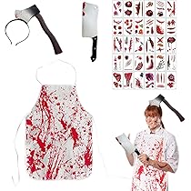 Gruseleien garantiert! Dieses komplett Halloween Metzger Kostüm Set macht dich zur gruseligen Attraktion. Enthält blutige Schürze, Küchenmesser-Attrappe, Dolch-Haarreif und 10 realistische Wunden-Tattoos. Die Tattoos sind haut freundlich, schweißfest und halten stundenlang. Einfach anziehen und loslegen - perfekt für Halloween-Partys, Cosplay oder Horror-Events. Aber Vorsicht: Nicht für kleine Kinder geeignet!