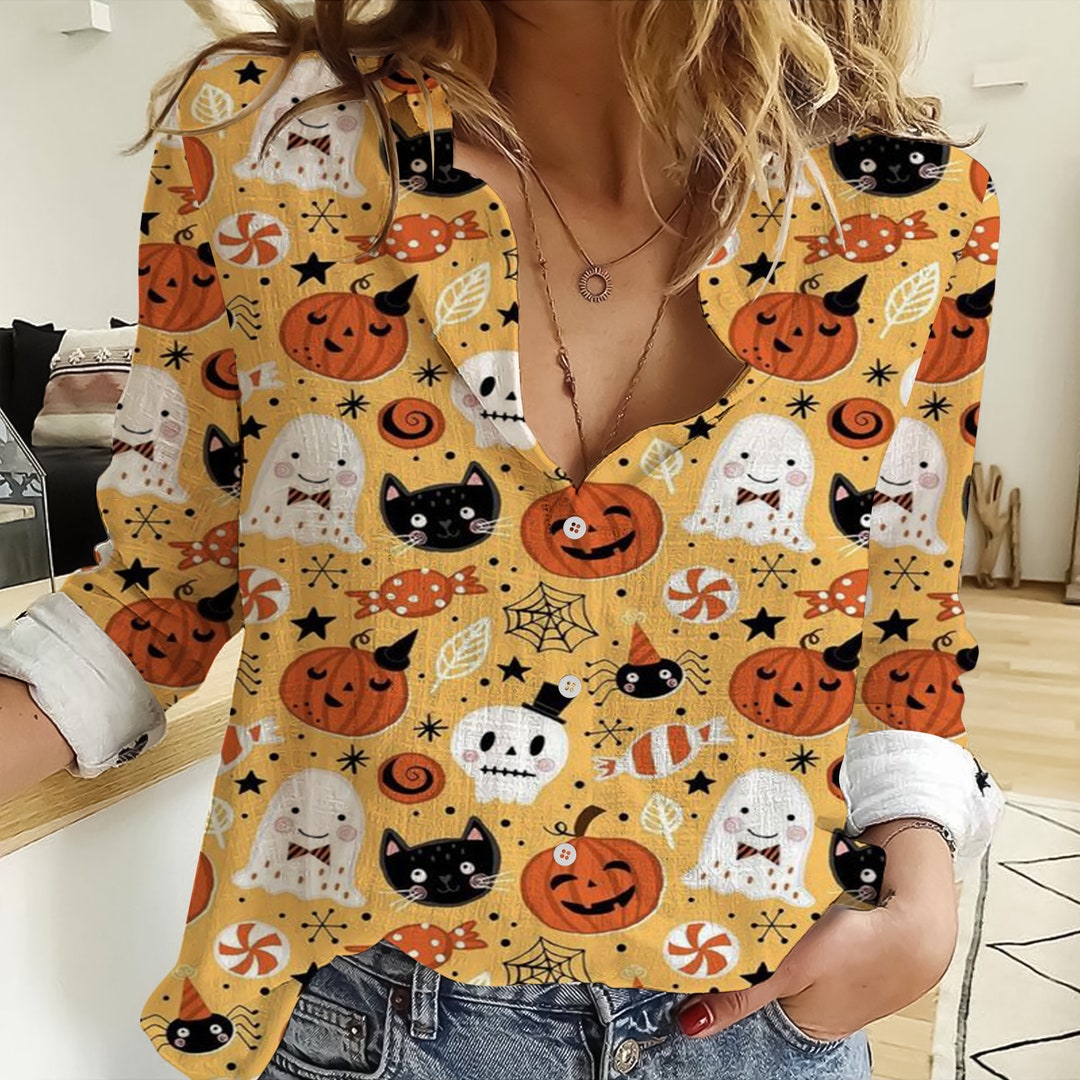 Boo! Mach dich bereit für die gruseligste Nacht des Jahres mit diesem ultra-süßen Halloween-Schlafanzug! Das 2-teilige Set mit kuscheligem T-Shirt und Hose features niedliche Kürbisse und skurrile Skelett-Motive im Karo-Look. \\n\\nPerfekt für Halloween-Partys, 'Süßes oder Saures'-Touren oder gemütliche Gruselfilmabende daheim. Kombiniere ihn mit Hausschuhen oder einem Hexenhut für den vollständigen Halloween-Look! \\n\\nGrößentipps: \\nGröße S: Oberteil 63cm lang, Büste 98cm / Hose 100cm lang, Taille 66cm \\nGröße M: Oberteil 64,2cm lang, Büste 103cm / Hose 101cm lang, Taille 70cm \\nGröße L: Oberteil 65,4cm lang, Büste 109cm / Hose 102cm lang, Taille 74cm \\n\\nDas Material ist angenehm weich und bequem - ideal für lange Halloween-Nächte. Ein super Geschenk für Freundinnen, Schwestern oder einfach für dich selbst! Bitte beachte: Kann 1-2cm von den angegebenen Maßen abweichen. Frohes Gruseln!