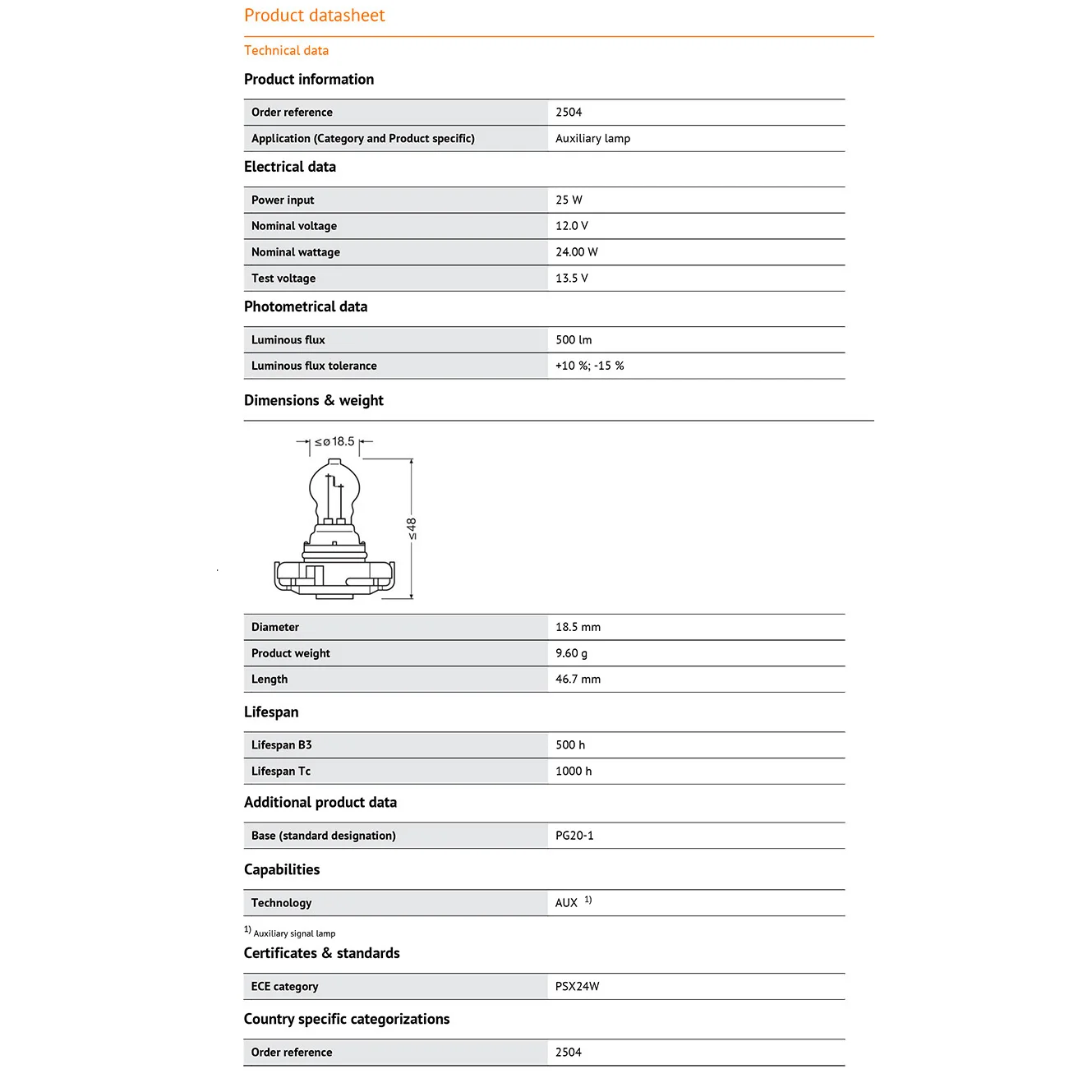 Brauchst du eine zuverlässige Ersatzlampe? Die OSRAM PSX PW24W ist genau das richtige! 12V Halogenlampe für verschiedene Anwendungen. Perfekt für Parklicht, Bremslicht oder Blinker. 500 Lumen Helligkeit und 500 Stunden Lebensdauer. Vollständig ECE R37 konform - also absolut verkehrstauglich. In umweltfreundlicher Verpackung ohne Plastik. Einfach auswechseln und wieder volle Sichtbarkeit genießen. OSRAM Qualität die man kennt und vertraut. Ob für Auto, Motorrad oder andere Fahrzeuge - hier bekommst du was du brauchst. Sicherheit geht vor - mit originalen Ersatzteilen!