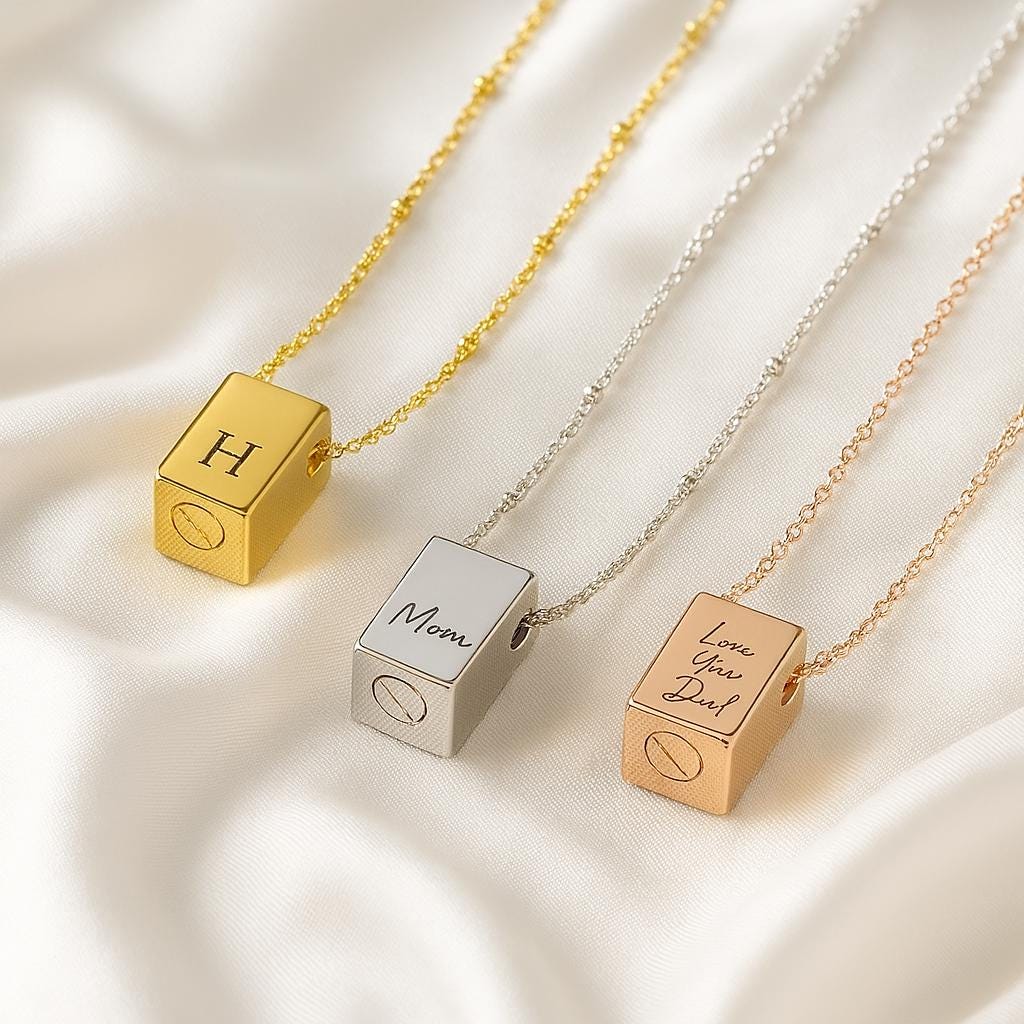 Dein treuer Begleiter ist gegangen? Diese personalisierte Urnen-Halskette von InfuMemo hilft dir, dein Haustier für immer bei dir zu tragen. ❤️\n\nDer Anhänger aus hochwertigem Edelstahl hat ein zartes Pfoten-Design und eine kleine runde Phiole, in die du etwas Asche, Haare oder Fell deines Lieblings geben kannst. So ist dein Hund oder deine Katze immer in deiner Nähe.\n\nDu kannst die Halskette ganz individuell gestalten: Gravieren lassen mit Namen, Datum, Koordinaten oder einer persönlichen Botschaft - mach sie zu etwas ganz Besonderem!\n\nTechnische Details: Der Anhänger misst 1,6x1,9cm und wiegt nur 9g. Die Kette ist 54,9cm lang - sitzt also perfekt. Lieferung inklusive Trichter zum Befüllen und einer schönen Geschenkbox.\n\nOb für dich selbst oder als tröstendes Geschenk für einen Freund - diese Halskette ist mehr als nur Schmuck. Sie ist eine wunderschöne Möglichkeit, die Erinnerung an eure gemeinsame Zeit lebendig zu halten.\n\nTäglich wasserdicht, aber bitte nicht beim Schwimmen tragen. Deine Liebe bleibt für immer - trag sie nah am Herzen! 🌈