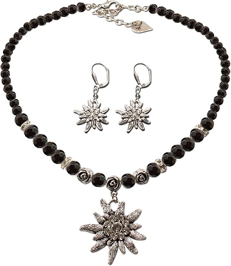 Trachtenschmuck Set Edelweiß - Halskette & Ohrstecker Für Dirndl & Oktoberfest