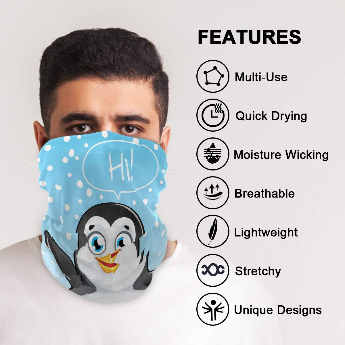 Dieses Pinguin-Halstuch ist dein vielseitiger Begleiter für Outdoor-Abenteuer! Aus weicher Mikrofaser - hautfreundlich, feuchtigkeitsabsorbierend und winddicht. Kann als Halstuch, Sturmhaube, Gesichtsmaske oder Mütze getragen werden - einfach unglaublich praktisch! Mit UV-Schutz für sonnige Tage. Perfekt für Motorradfahren, Skifahren, Radfahren, Wandern - eigentlich für alles, was draußen Spaß macht. Für Damen, Herren und Kinder gleichermaßen geeignet. Maschinenwaschbar und schnell trocknend - super pflegeleicht. Einfach umbinden und los geht's - stylisch und funktional!