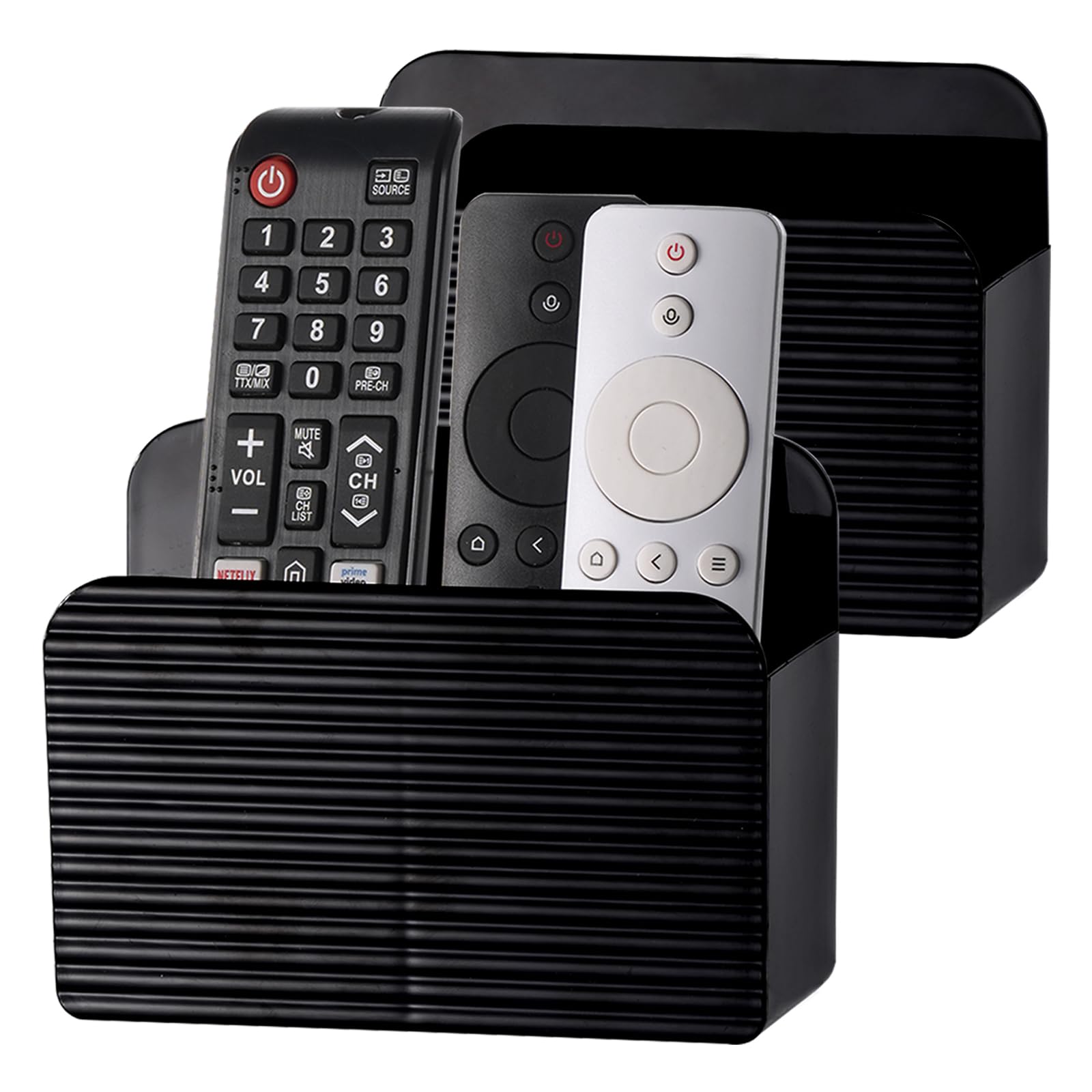 Suche dir auch ständig deine Fernbedienungen zusammen? Mit diesen praktischen Haltern gehört das der Vergangenheit an! Das Set mit 2 transparenten Haltern gibt deinen Fernbedienungen endlich einen festen Platz.\\n\\nJeder Halter hat ne Gesamtgröße von 5,43x4,13x2,28 Zoll und kann 2-3 Fernbedienungen aufnehmen. Egal ob TV, Kabel-Box, DVD-Player oder Klimaanlage - hier findet alles Platz! Und das coole: Du musst keine Löcher in die Wand bohren!\\n\\nEinfach die Klebefläche von der Schutzfolie befreien, an ne saubere, glatte Wand drücken - und fertig! Der starke Kleber hält super, lässt sich aber mit nem Fön wieder lösen, ohne Spuren zu hinterlassen.\\n\\nDu kannst die Halter aber auch einfach so hinstellen, wenn du nicht kleben willst. Perfekt fürs Wohnzimmer, Schlafzimmer, Büro - überall wo Fernbedienungen rumfliegen!\\n\\nAus hochwertigem ABS-Kunststoff sind die Halter robust und langlebig. Das transparente Design passt zu jeder Einrichtung und fällt kaum auf.\\n\\nAlso, wenn du Ordnung in dein Fernbedienungs-Chaos bringen willst, sind diese Halter genau das Richtige! Einfach montieren, Fernbedienungen rein - und nie wieder suchen müssen. So praktisch!
