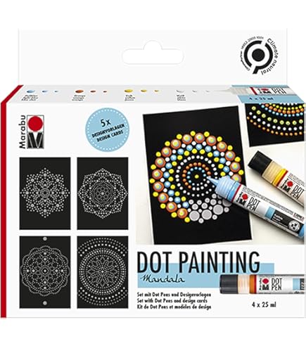 Bist du kreativ und liebst Mandalas? Dieses Aladine Set macht Dot Painting zum Kinderspiel! Mit nem 10cm Halter und ner praktischen Schablone - alles was du für perfekte Mandalas brauchst. Einfach die Punkte mit Bleistift vorzeichnen (geht super mit der Schablone) und dann mit Dotting-Tools in verschiedenen Größen ausmalen. Der Halter gibt dir nen sicheren Halt für Steine, Holz oder Leinwand. Super entspannend - wie Meditation mit Farbe! Egal ob Anfänger oder Profi - damit kriegst du immer symmetrische, schöne Mandalas hin. Perfekt für Steine, aber auch für Holz, Stoff, Leinwand oder was du sonst so verzieren willst. Macht total Spaß und die Ergebnisse sehen professionell aus. Ideal zum Abschalten nach nem stressigen Tag. Ein kreatives Hobby, das wirklich jeder lernen kann. Für dich selbst oder als Geschenk für kreative Freunde - damit wird jeder zum Künstler!