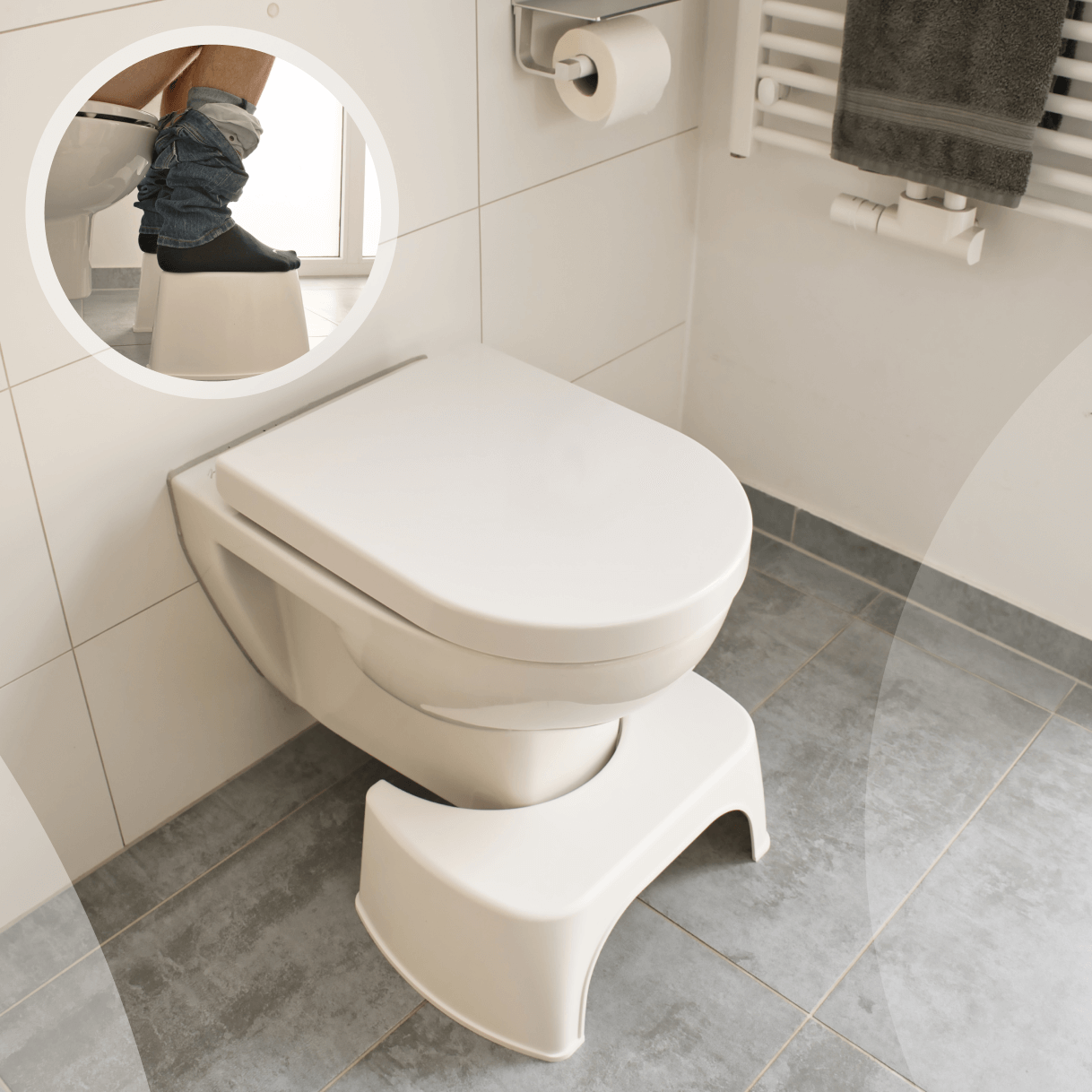 Durch die optimierte Position (etwa 35-Grad-Winkel) wird der Darm entlastet und der Stuhlgang erleichtert. Das kann bei Verstopfung, Hämorrhoiden oder Reizdarmsyndrom wirklich helfen.
