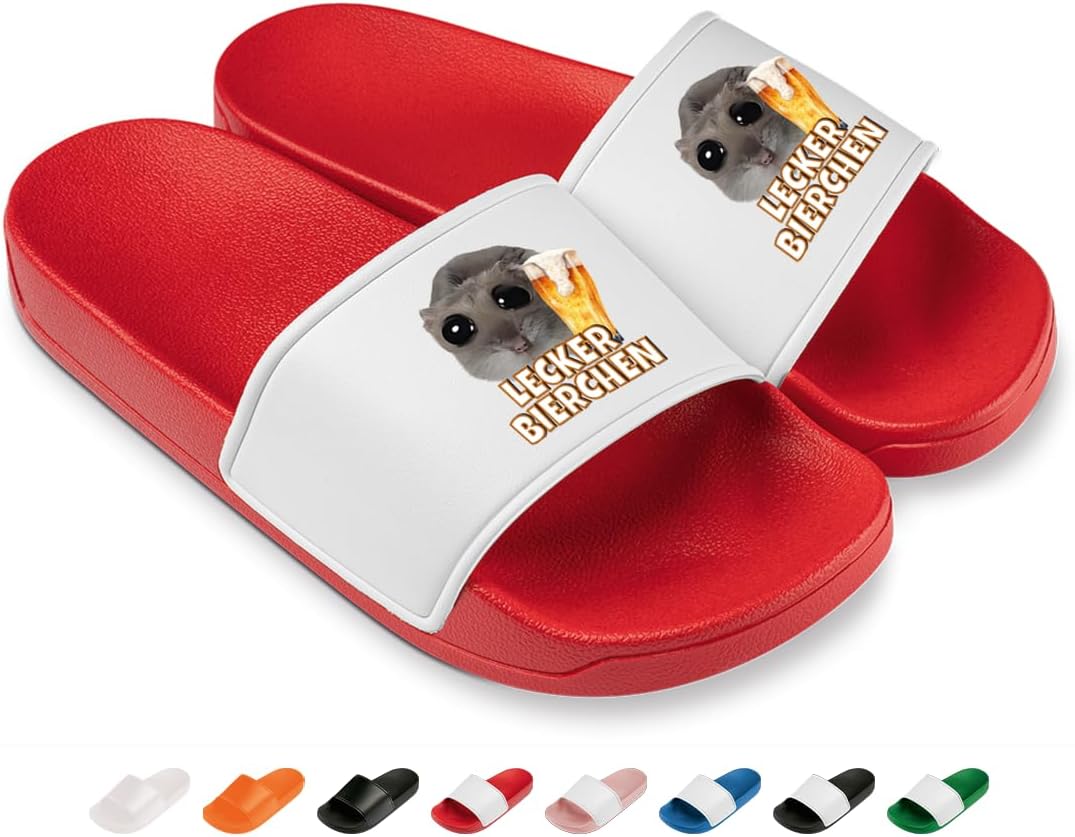 Die perfekten Begleiter für den nächsten Mallorca-Urlaub! Diese ultra-bequemen Badelatschen mit dem süßen Hamster-Motiv und dem Spruch 'Lecker Bierchen' sorgen garantiert für gute Laune. Die rutschfeste Sohle gibt sicheren Halt an Pool, Strand oder in der Therme. Superleicht und ergonomisch geformt für maximalen Komfort auch bei langem Tragen. Das Unisex-Design passt sowohl Herren als auch Damen - verfügbar in den Größen 36-47. Perfekt für Strand, Schwimmbad, Sauna oder einfach als lustige Hausschuhe. Mach deine Füße zum Party-Highlight und zeig allen, dass du weißt, was wichtig ist im Leben - Prozente Momente und lecker Bierchen!