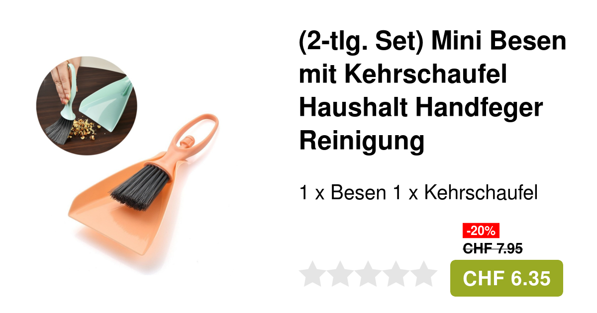 Dieses Mini-Besen-Set von HAMPPLIES ist so praktisch! Nur 26x17x3cm groß - passt in jede Schublade. Mit weichen Borsten die nichts zerkratzen und flexiblem Griff der gut in der Hand liegt. Perfekt für den Schreibtisch, um Krümel wegzufegen. Oder für enge Ecken wo der große Besen nicht hinkommt. Auch super fürs Auto, Regale oder Tierkäfige. Die orange-graue Farbe sieht modern aus. Macht sogar Kindern Spaß - die helfen gerne mit beim Kehren! Leicht und platzsparend - ideal für kleine Wohnungen oder Büros. Einfach mal ausprobieren, dann weißt du nicht mehr wie du ohne ausgekommen bist! Auch für Bastler super um nach dem Arbeiten gleich aufzuräumen. Wirklich ein praktisches Teil für den täglichen Gebrauch - und so günstig!