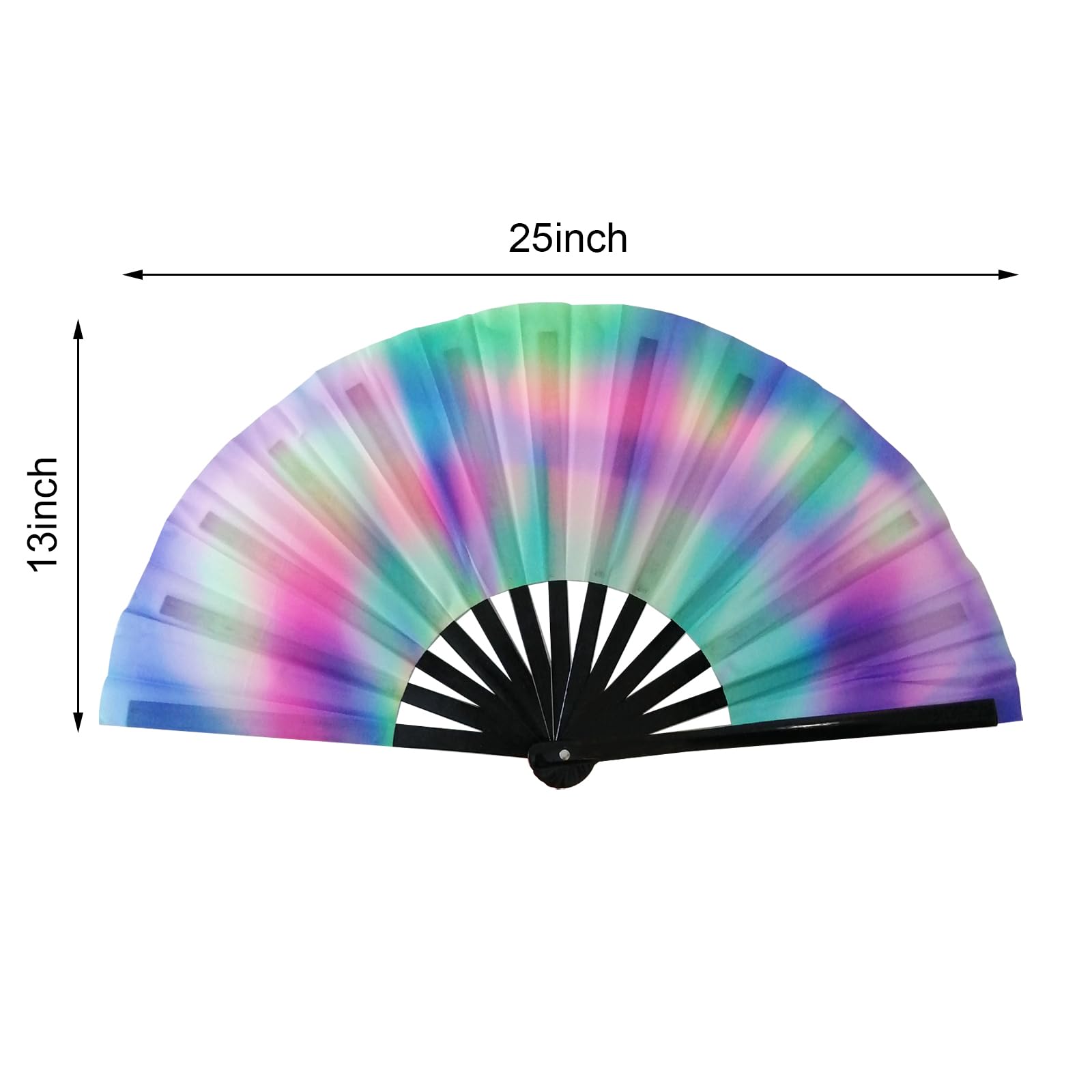 Also dieser Handfächer ist nicht nur super praktisch, sondern sieht auch noch richtig stylisch aus! Aus Bambusrahmen und Polyester gemacht - super stabil und langlebig. Wenn er aufgeklappt ist, hat er stolze 63,5cm Durchmesser, zusammengeklappt nur 33cm - passt also in jede Handtasche. Einfach eine Handgelenkbewegung und schon entfaltet er sich mit diesem typischen Klappgeräusch. Perfekt für heiße Tage, Festivals, Konzerte, Hochzeiten oder wenn man einfach mal Abkühlung braucht. Aber er ist nicht nur zum Fächeln gut - als Deko an der Wand sieht er auch mega aus! Die bunten Muster sind richtig schön und machen ihn zum idealen Geschenk für jeden Anlass. Leicht und robust zugleich - genau das, was man unterwegs braucht. Ob beim Tanzen, Reisen oder auf der Party - mit diesem Fächer bist du immer cool unterwegs!