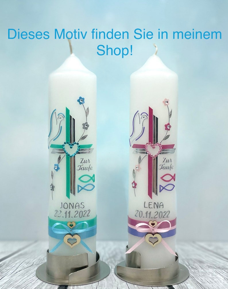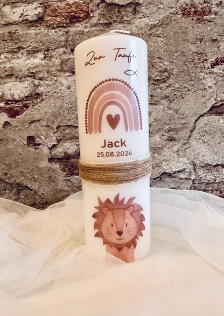 Zur Taufe nur das Allerbeste! Diese wunderschöne personalisierte Taufkerze wird in Deutschland mit viel Liebe handgefertigt. Verziert mit einem farbenfrohen Regenbogen und Blumen, wird sie zum einzigartigen Erinnerungsstück. Du kannst sie mit dem Namen des Täuflings, dem Taufdatum und einem persönlichen Taufspruch individualisieren. Mit RAL-Gütezeichen und aus hochwertigem Paraffinwachs gefertigt, brennt sie ca. 120 Stunden. Die stattliche Größe von 25x8cm macht sie zum echten Hingucker. Jede Kerze wird nach Bestellung angefertigt, daher kann es leichte Abweichungen im Design geben - das macht sie ja gerade so besonders! Die Übertragung erfolgt mit einer Folie, die über Nacht trocknen muss. Kleine Luftbläschen oder Unregelmäßigkeiten sind Zeichen der Handarbeit. Wichtig: Brennende Kerzen nie unbeaufsichtigt lassen und von Kindern fernhalten. Als Kleinunternehmer in NRW lege ich besonderen Wert auf Qualität und Einzigartigkeit. Ein Geschenk, das noch Jahre später an diesen besonderen Tag erinnert!