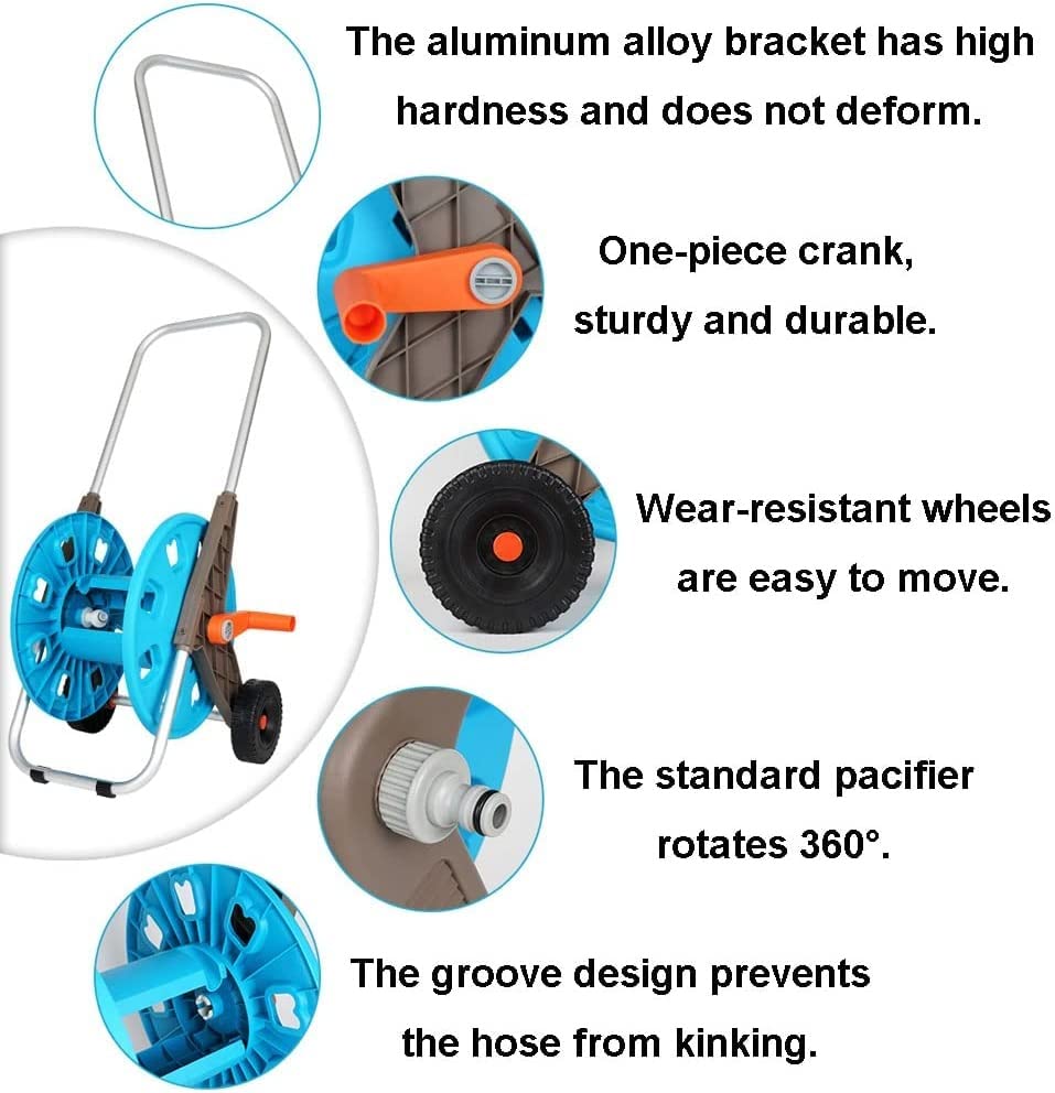 • Schlauchwagen Garten 50m - Mit Handkurbel & 2 Rädern Aus Kunststoff & Edelstahl