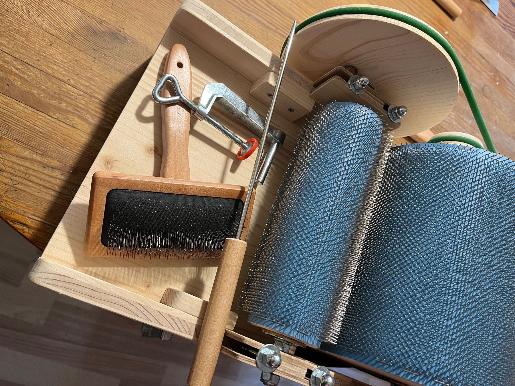 Hey du kreative Seele! Diese handbetriebene Wollkrempelmaschine ist dein neuer bester Freund für alle Filz- und Spinnprojekte. Mit der robusten Metallkonstruktion und Zahnradantrieb kämmt sie selbst die verworrenste Wolle in gleichmäßige Fasern - total praktisch! Die beiden Trommeln (die große Haupttrommel und kleinere Einlauftrommel) arbeiten perfekt zusammen und die doppelt wirkenden Bürsten sorgen für makellos ausgerichtete Stränge. Ob du jetzt bunte Farben mischen willst oder Verunreinigungen entfernen - das Teil rockt! Maße: 30x20x15 cm, Gewicht 1,7 kg. Aus Alu-Legierung und Edelstahlnadeln gefertigt, also super langlebig. Perfekt für Handspinner, Filz-Fans und alle, die gern mit Wolle basteln. Du kannst damit nicht nur Fasern kämmen, sondern auch total coole Farbverläufe kreieren - wie ein echter Künstler halt! Und das Beste: Kein Strom nötig, einfach Handkurbel drehen und loslegen. Ein mega Geschenk für DIY-Liebhaber, die Filztiere oder individuelle Wollprojekte machen. Lieferung inklusive einer Wollfaser-Kardiermaschine - alles was du brauchst für dein nächstes Bastelabenteuer!