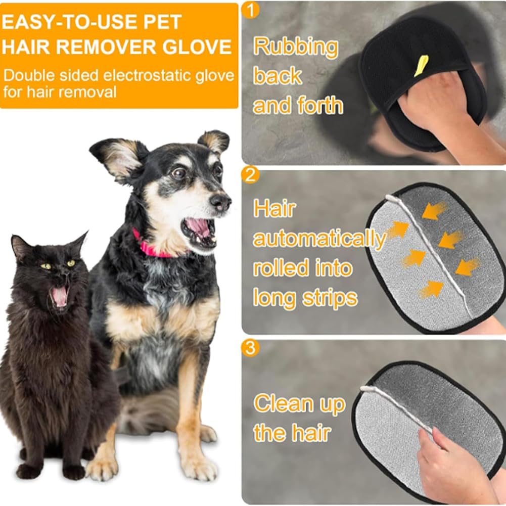 • Yomi Haustierhaar-Entferner Handschuh 3er Set - Elektrostatischer Handschuh Für Hunde & Katzen