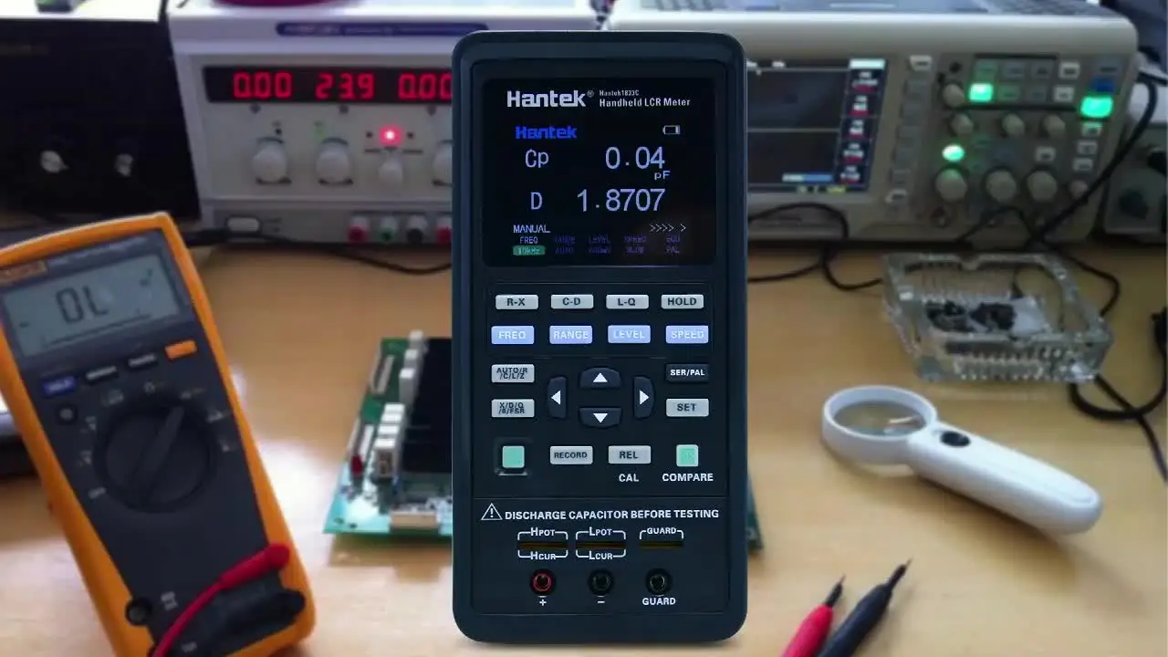 Professionelle Messtechnik für deine Elektronik-Projekte! Das Hantek 1833C LCR-Messgerät ist dein zuverlässiger Partner für präzise Messungen von elektronischen Bauteilen.\\n\\nTechnische Highlights:\\n• Testfrequenzen: 100Hz bis 100kHz (10 Frequenzen)\\n• Grundgenauigkeit: 0,30%\\n• Display: 2,8 Zoll TFT LCD\\n• Messparameter: L/C/R/Z\\n• Betriebsspannung: 0,6 Vms, 0,3 Vms\\n\\nBesondere Features:\\n• Automatische und manuelle Bereichswahl\\n• Drei- und Fünf-Punkt-Messung\\n• Einstellbare Messgeschwindigkeit\\n• Wiederaufladbarer Akku\\n• Stoßfeste Schutzhülle\\n• PC-Schnittstelle für Datenanalyse\\n\\nEinsatzbereiche:\\n• Charakterisierung passiver Bauteile\\n• Fehlersuche in Schaltungen\\n• Qualitätskontrolle in der Produktion\\n• Entwicklung und Forschung\\n• Reparatur und Wartung\\n\\nVorteile für dich:\\n• Schnelle und genaue Messergebnisse\\n• Einfache Bedienung durch klare Anzeige\\n• Robuste Bauweise für den täglichen Einsatz\\n• Lange Akkulaufzeit\\n• Umfangreiche Analyse-Möglichkeiten\\n\\nOb du Elektronik-Entwickler, Servicetechniker oder Hobby-Bastler bist - dieses Messgerät liefert dir zuverlässige Daten für deine Arbeiten. Die hohe Präzision und die vielfältigen Funktionen machen es zum idealen Werkzeug für anspruchsvolle Messaufgaben.