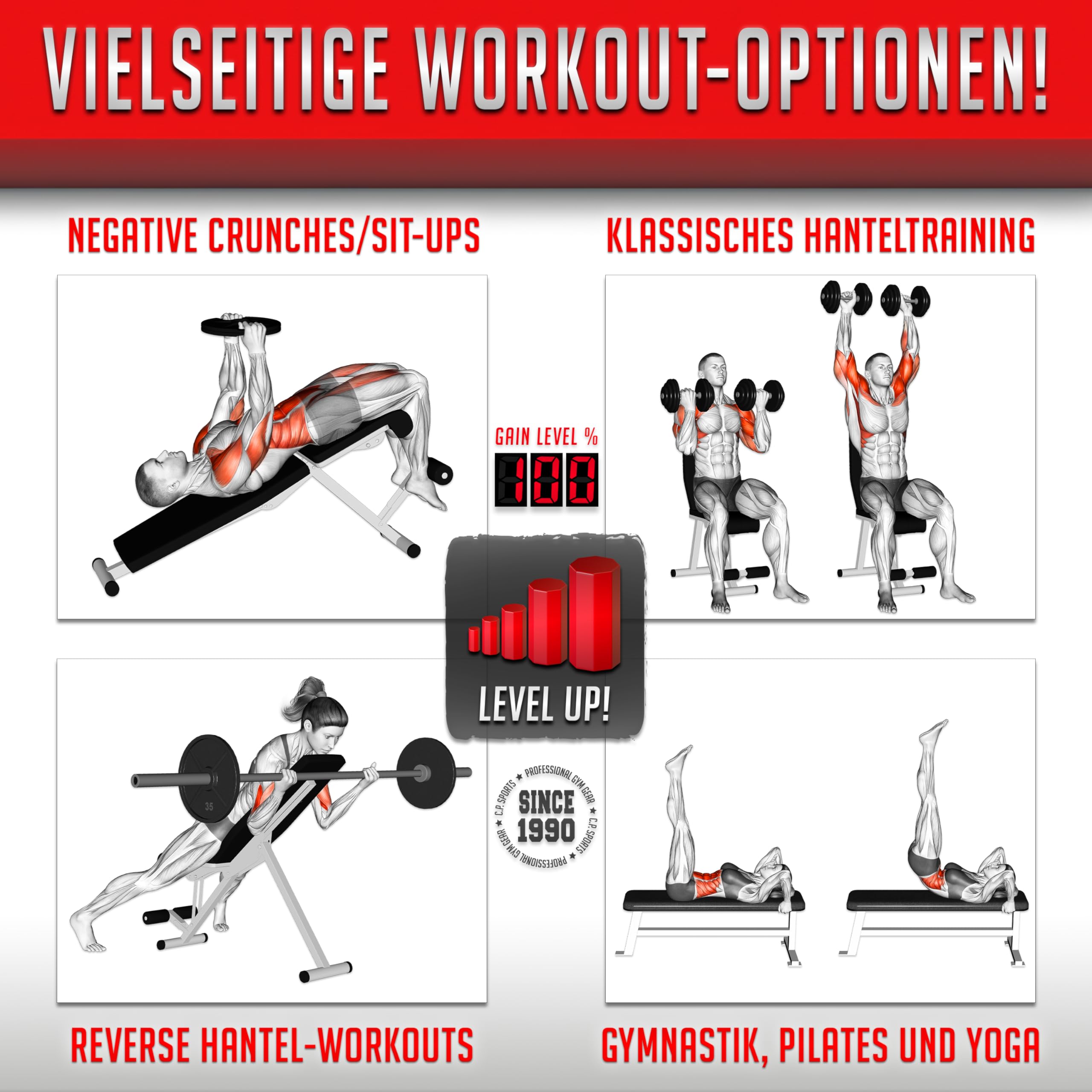 Boah, diese C.P.Sports Hantelbank ist ja mal richtig professionell! Hält bis zu 200kg aus - da kannst du richtig Gas geben. Die Rückenlehne ist 7-fach verstellbar, von Flachbank bis Schrägbank alles möglich. Aus robustem Stahl, pulverbeschichtet in schwarz, und die Polsterung ist aus strapazierfähigem PU-Leder. Nur 12kg schwer, aber mega stabil. Maße: 110cm lang, Sitz 34cm lang, Lehne 73cm. Das coole: Sie ist klappbar! Wenn du mal keinen Platz hast, einfach zusammenklappen und wegstellen. Perfekt für Bankdrücken, Curls, Sit-Ups - eigentlich für alles, was du im Home Gym so brauchst. Wird unmontiert geliefert, aber Aufbau ist easy. C.P.Sports ist deutscher Hersteller, also Qualität, auf die du dich verlassen kannst. Hol dir deine und rock dein Workout!