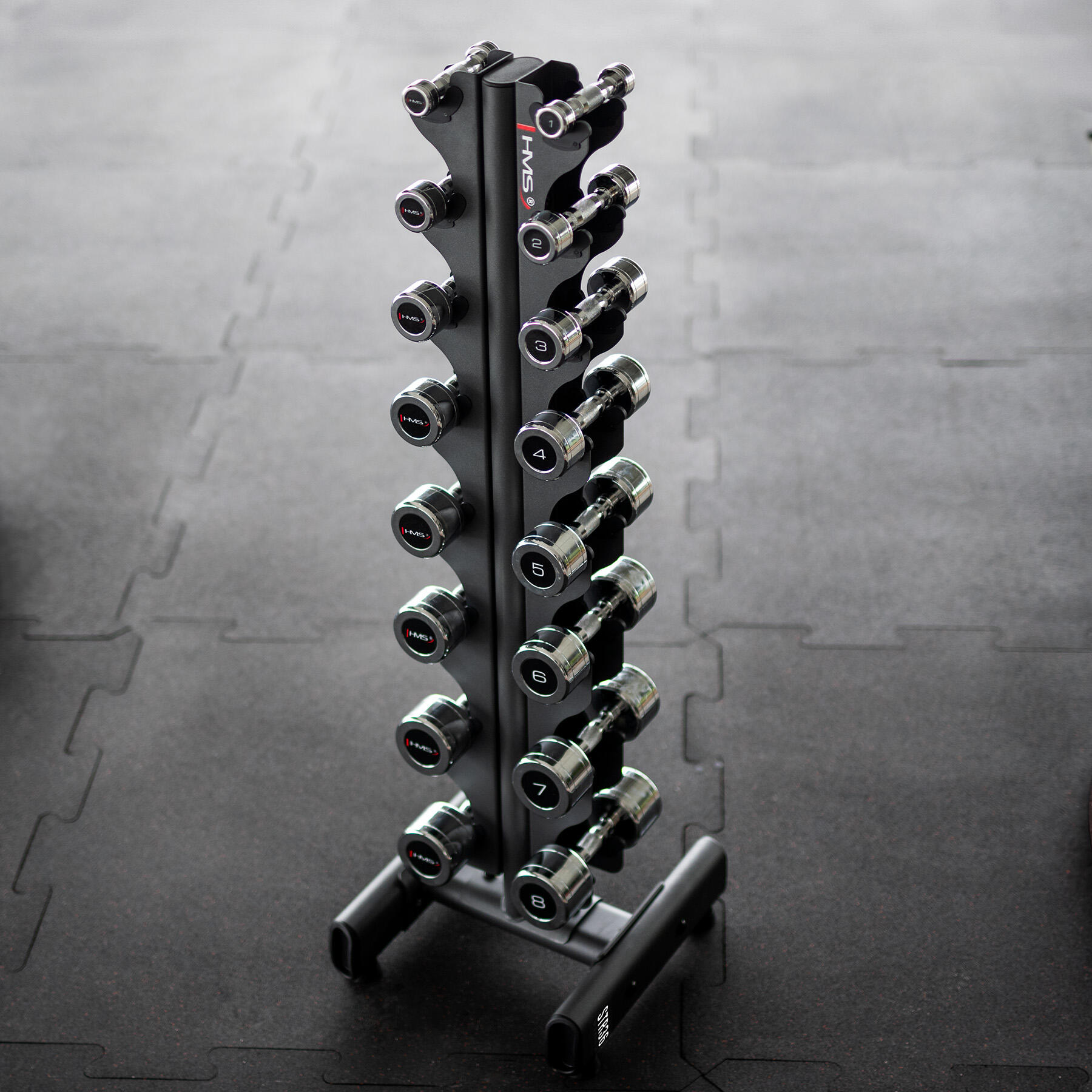 Das coole an dem Set: Du kannst das Gewicht von 3,5kg bis 10kg pro Hantel verstellen. Perfekt für verschiedene Übungen und Trainingslevel. Und die Hanteln haben eine 12-eckige Form - die rollen nicht weg wie diese runden Teile!