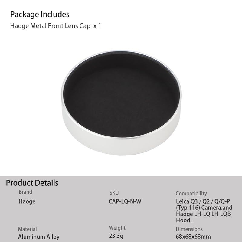 Für alle Leica-Fans: Dieser Haoge Objektivdeckel aus Metall ist einfach nur premium! Aus hochwertigem Aluminium in CNC-Präzisionsbearbeitung gefertigt, sitzt er perfekt auf deiner Leica Q3, Q3-43, Q2 oder Q (Typ 116). Die anodisierte Oberfläche sieht nicht nur edel aus, sondern ist auch super langlebig. Das Beste: Innen ist ein weiches Flanell angebracht, das dein wertvolles Objektiv optimal schützt - keine Kratzer, keine Beschädigungen. Einfach aufsetzen und deine Kamera ist sicher vor Staub, Fingerabdrücken und anderen Gefahren. Der Deckel liegt gut in der Hand und lässt sich leicht auf- und absetzen. Perfekte Passgarantie - kein Wackeln, kein Verkanten. Ob unterwegs, im Fotostudio oder einfach nur zur sicheren Aufbewahrung - dieser Objektivdeckel ist ein Must-Have für jeden Leica-Besitzer, der Wert auf Qualität und Schutz legt. Mach deine wertvolle Kamera rundum sicher und hol dir diesen hochwertigen Metall-Deckel!