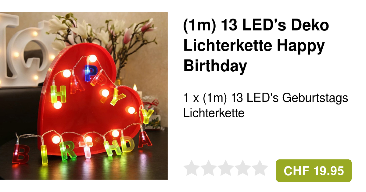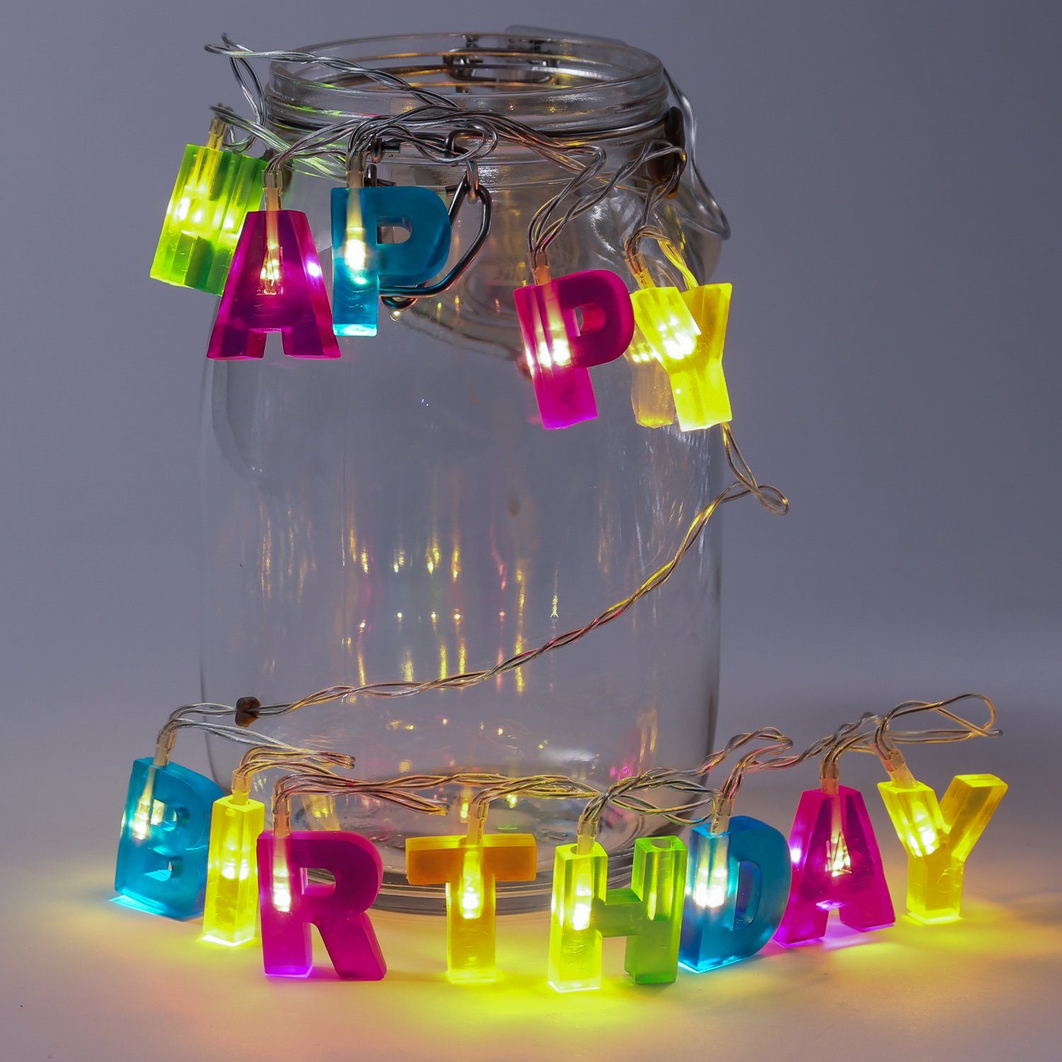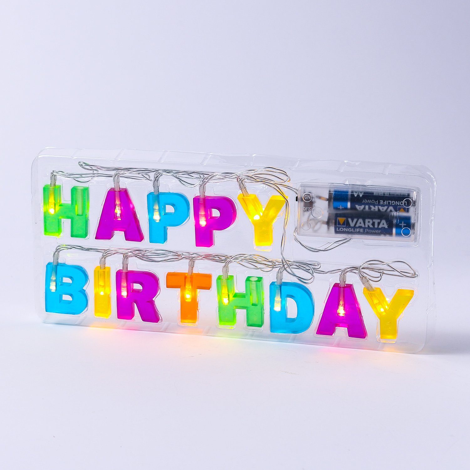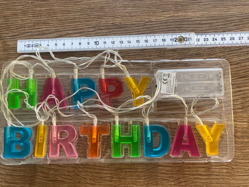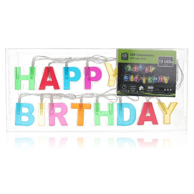 Wow, was für eine coole Deko für die nächste Geburtstagsfeier! Diese Lichterkette zeigt 'Happy Birthday' in bunten LED-Buchstaben und macht jeden Raum sofort festlich. Mit 13 LEDs auf 1,3 Meter Länge ist sie der absolute Hingucker auf dem Geburtstagstisch. Die Buchstaben aus PVC sind leicht aber robust - nichts geht kaputt. Betrieb mit 2 AA-Batterien (nicht dabei), also komplett kabellos und überall einsetzbar. Einfach einschalten und sofort strahlt die Party! Perfekt nicht nur für Geburtstage, sondern auch für Weihnachten, Halloween oder romantische Abende. Macht auch als Deko im Kinderzimmer oder Wohnzimmer was her. Einfach zu transportieren und wiederverwendbar - Jahr für Jahr dein treuer Party-Begleiter. Das perfekte Geschenk für Party-Liebhaber oder um die eigene Feier aufzupeppen!