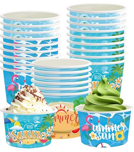 Sommer-Feeling pur mit diesen bunten Hawaii-Eisbechern! Im Set mit 24 Stück - genug für deine nächste Party. Jeder Becher fasst 240ml und ist perfekt für Eis, Milchshakes, Joghurt, Obst oder andere Desserts. Aus dickem, hochwertigem Papier - sicher, ungiftig und stabil. Halten sowohl kalte als auch warme Speisen problemlos aus. Die fröhlichen Sommer-Motive in leuchtenden Farben machen jede Feier bunter. Einfach zu verwenden und danach entsorgen - kein Abwasch nötig! Perfekt für Hawaii-Partys, Geburtstage, Strandfeste, Poolpartys oder einfach nur für gemütliche Sommerabende. Mach deine nächste Feier unvergesslich mit diesen fröhlichen Bechern! Verschiedene Designs im Set - jede Bestellung eine bunte Überraschung!