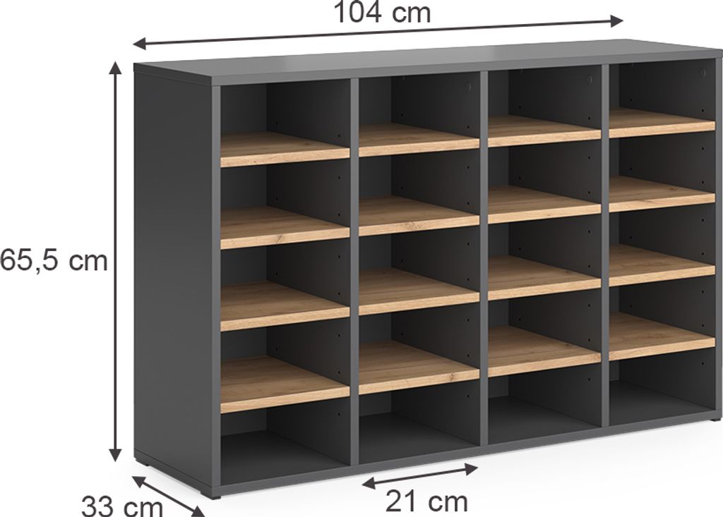 👟 OPTIMALES DESIGN: Mit 108 cm Breite und 107,5 cm Höhe passt dieser Schrank perfekt in jeden Flur oder Eingangsbereich. Nur 23,5 cm tief - super platzsparend!