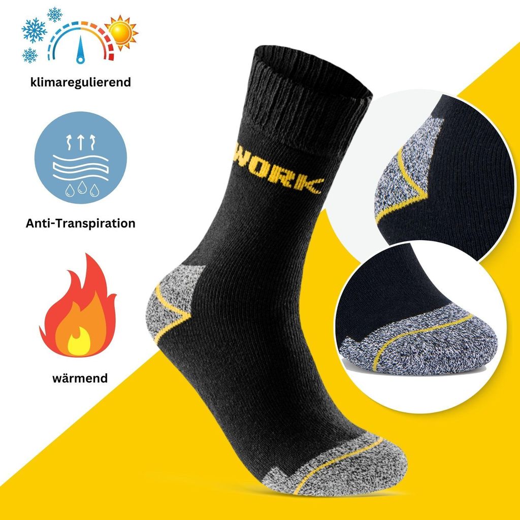 Endlich Socken, die was aushalten! Dieses 10er-Pack Arbeitssocken von Mowenti ist genau das Richtige für alle, die viel auf den Beinen sind. Dickes Frottee-Innenleben hält im Winter super warm und polstert die Füße angenehm - weniger Druck, weniger Reibung! Mit 70% Baumwolle, 27% Polyester und 3% Elasthan sind sie weich, atmungsaktiv und dehnbar. Die dunklen Farben sind praktisch für die Arbeit und die verstärkten Bereiche machen sie extra langlebig. Ob auf der Baustelle, im Handwerk oder einfach für kalte Tage - diese Socken rocken! Und gegen Schweißgeruch helfen sie auch noch. Einfach das beste Preis-Leistungs-Verhältnis für qualitativ hochwertige Arbeitssocken!