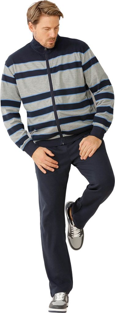 Entspannung pur! Dieser Herren Homewear Anzug ist das Original für gemütliche Stunden zu Hause. Aus weicher Interlock-Baumwolle mit Mikrofaser-Anteil für optimalen Klima-Komfort - nicht zu warm, nicht zu kalt, einfach perfekt! Der graue Anzug mit dezentem Ringeldessin und farbig abgesetztem Umlegekragen sieht stylisch aus, ohne aufdringlich zu wirken. Das Oberteil mit praktischem Reißverschluss ist super einfach an- und auszuziehen. Die Passform ist genau richtig - weder zu eng noch zu weit. Perfekt fürs Relaxen auf dem Sofa, Homeoffice-Tage oder einfach zum Wohlfühlen. Das Material bleibt formstabil, auch nach häufigem Waschen. Langärmelig und bequem geschnitten - was will man mehr? Egal ob du fernsehen willst, ein Buch liest oder einfach nur die Seele baumeln lässt - in diesem Anzug fühlst du dich sofort wohl. Der besondere Tragekomfort macht diesen Homewear-Anzug zum echten Lieblingsteil in deinem Schrank. Gönn dir diese Auszeit - du hast sie dir verdient! Qualität, die man spürt - von der Stoffstärke bis zur Verarbeitung.