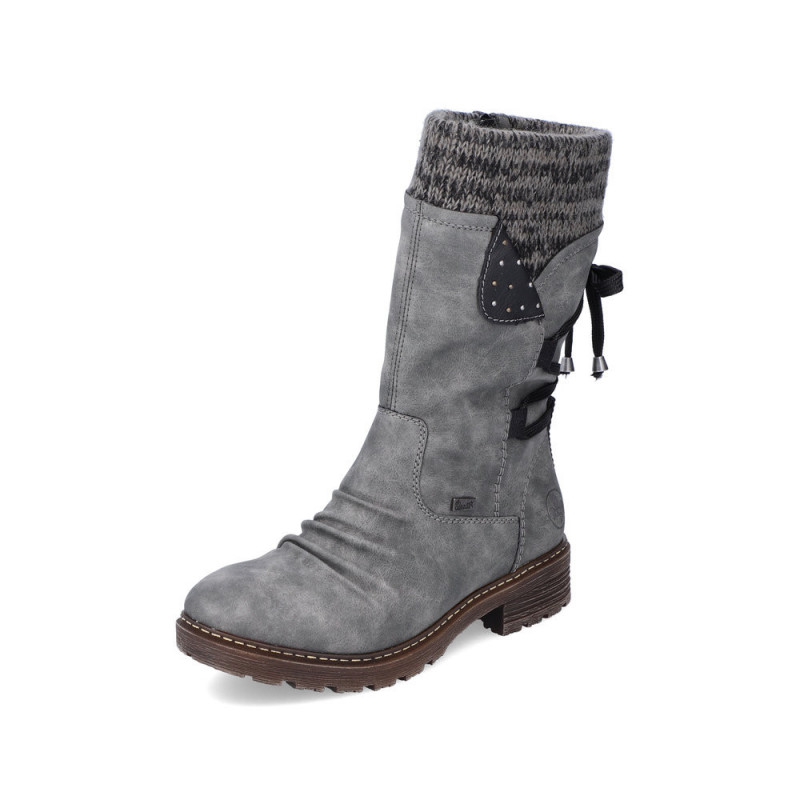 Diese Rieker Winterstiefel sind deine besten Begleiter bei kaltem Wetter! In grau, mit wasserabweisender Synthetik-Oberfläche und riekerTEX-Membran - hält Füße trocken und warm. Warmfutter innen, textile Decksohle und gepolstertes Fußbett für ganztägigen Komfort. Rutschhemmende Sohle gibt Sicherheit auf glatten Straßen. Mit Reißverschluss und Schnürung - easy an- und auszuziehen. Schafthöhe 13cm, Absatz 2,9cm. Normalweite, passt zu Jeans oder Chinos. Perfekt für Büro, Stadt oder Spaziergänge - stylisch und praktisch zugleich!