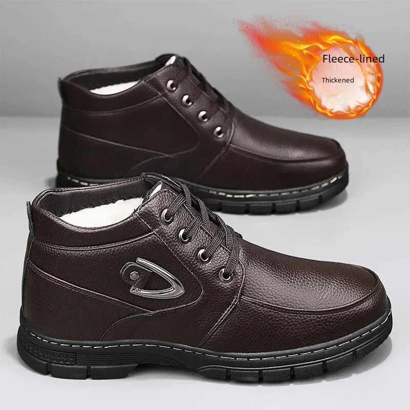 Wenn der Winter kommt, sind diese Herren-Stiefel deine besten Begleiter! Egal ob bei Matsch, Schnee oder Eis - die rutschfeste Sohle gibt dir sicheren Halt auf jedem Untergrund. Das wasserabweisende Obermaterial hält deine Füße trocken, während das dicke Fleece-Futter für kuschelige Wärme sorgt. \n\nBesonders praktisch: Die Stiefel sind super leicht und super bequem - perfekt für den täglichen Gebrauch oder Outdoor-Abenteuer. Ob du jetzt zur Arbeit gehst, wandern willst oder einfach nur gemütlich durch den Winterwald spazierst - mit diesen Stiefeln machst du alles mit! \n\nObermaterial: Wasserdichtes, elastisches Gewebe\nInnenfutter: Dickes Fleece für maximale Wärme\nSohle: Rutschfest mit starker Traktion\n\nEinfach mit einem feuchten Tuch abwischen und schon sehen sie wieder aus wie neu. So überstehst du jeden Winter in Style und Komfort!