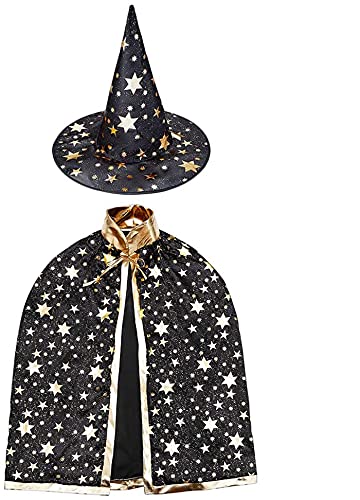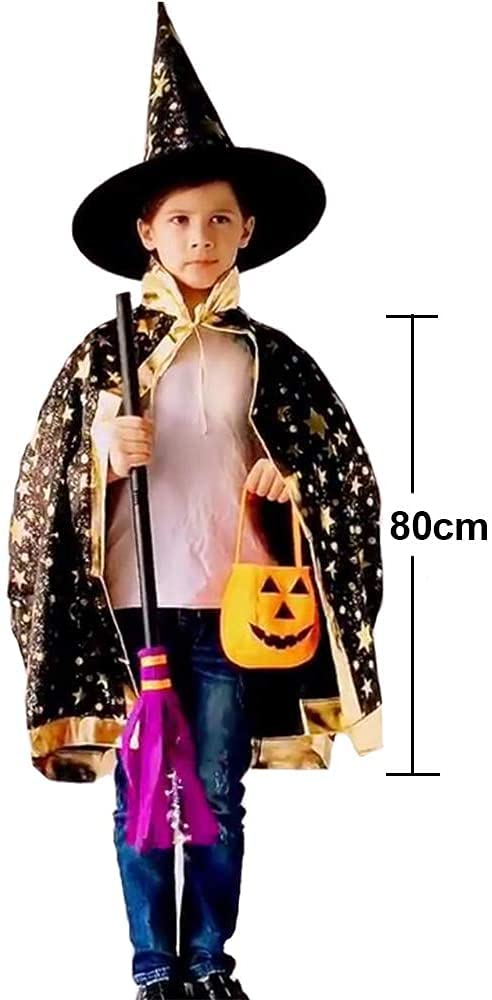 • BOBOZHONG Halloween Hexen Umhang Mit Hut - Kinder Zauberer Kostüm Für Cosplay & Partys