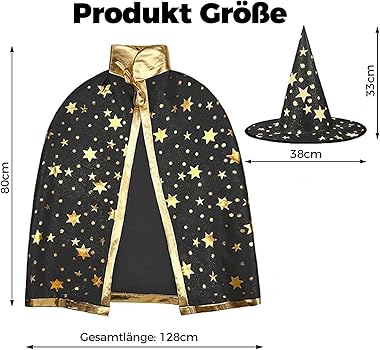 Für die nächste Halloween-Party ist dieses Hexen-Kostüm mit Umhang und Hut genau das Richtige! Aus weichem Polyester, super bequem für die Kleinen und in knalligen Farben ein echter Hingucker. Die Einheitsgröße passt für die meisten Kinder von 3 bis 12 Jahren – ideal also auch für Geschwisterkostüme! Ob für die Schule, ne Mottoparty oder einfach nur zum Verkleiden daheim: Damit sind die Kids die Stars der Feier. Einfach anziehen und den Zauber beginnen lassen – mehr braucht's nicht für nen unvergesslichen Abend!