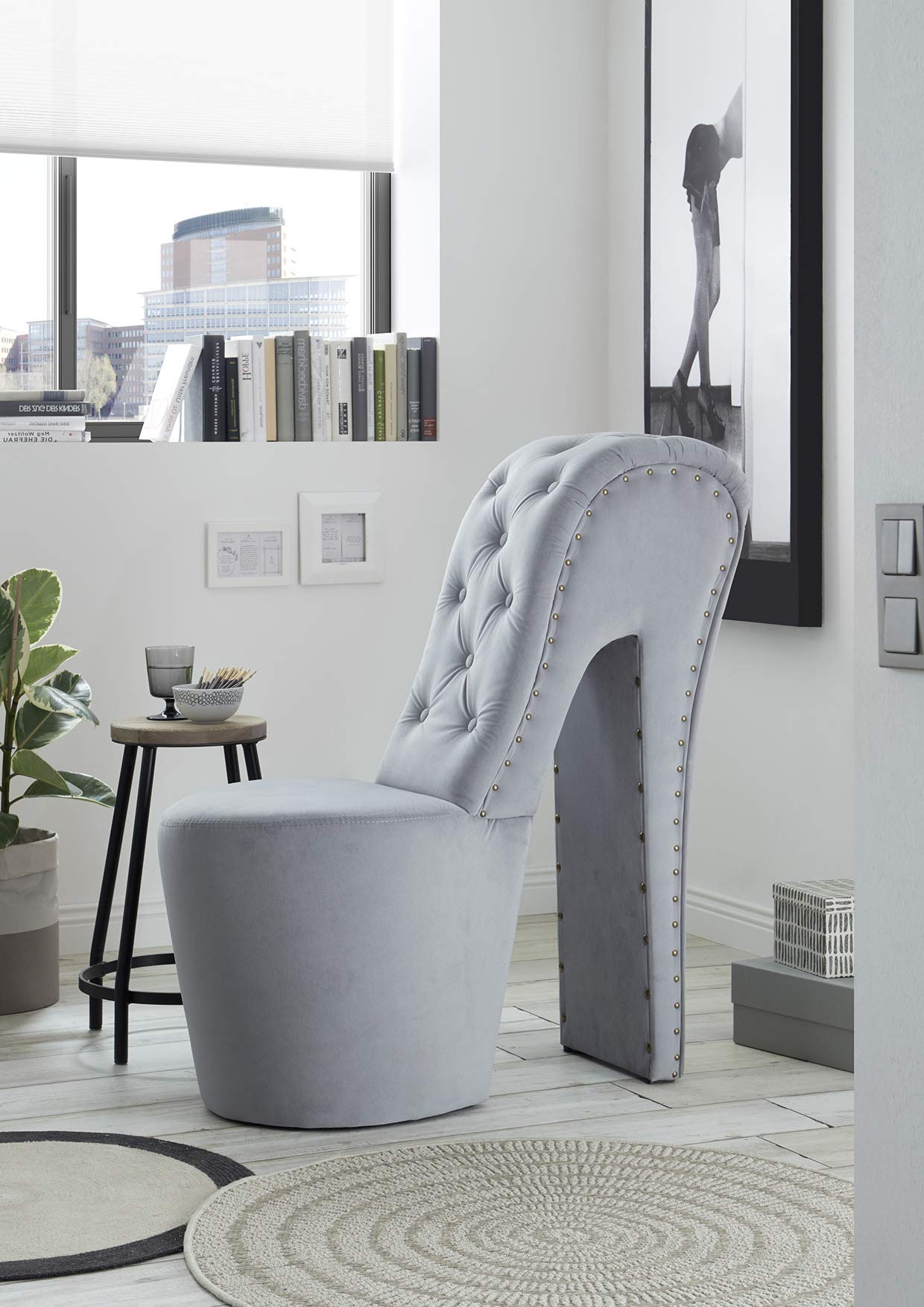 Wow, was für ein Hingucker! Dieser Sessel im High Heel Design ist einfach mal was Anderes. Mit stylischer Knopfsteppung und retro Look passt er perfekt in jedes modebewusste Zimmer. Bis 120kg belastbar - also auch für etwas kräftigere Personen geeignet. Super pflegeleicht und ein absolutes Statement-Piece. Ob im Schlafzimmer, Flur oder als Gesprächsstoff im Wohnzimmer - dieser Sessel wird garantiert Aufmerksamkeit erregen. Für alle, die es extravagant mögen!