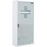 Ordnung und Sicherheit für deine Medikamente! Dieser Medizinschrank aus Metall mit satinierter Glastür hält alles ordentlich verstaut. Mit 2 Fächern und den Maßen 30x30x12 cm findest du Platz für Verbandszeug, Tabletten und Co. Abschließbar mit 2 Schlüsseln - ideal mit Kindern im Haus. Die Tip-On-Automatik macht das Öffnen super einfach. Das Erste-Hilfe-Kreuz auf der Tür sorgt für schnelles Finden im Notfall. Einfach an der Wand montieren (Montagematerial inklusive) und schon bist du bestens organisiert. Für Badezimmer, Flur oder Arbeitszimmer - Sicherheit geht vor!