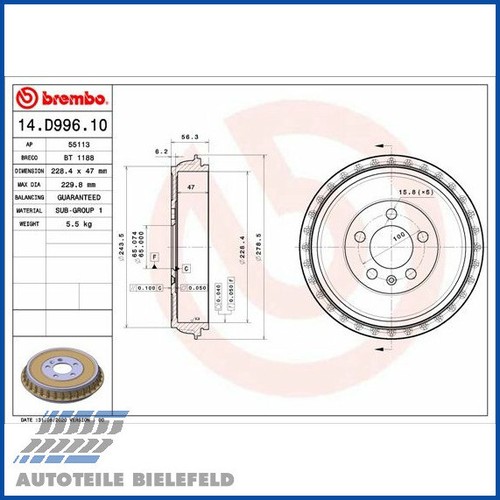 Passend für eine Reihe von VW, Seat und Audi Modellen – darunter VW Polo (1994-1999), Golf II, Seat Arosa und mehr. Die Brembo Hinterrad-Bremstrommel mit Trommeldurchmesser 180 mm und max. Ausdrehmaß 181 mm ist ein Qualitätsersatzteil, das OEM-Standards entspricht oder übertrifft. Wichtig: Im Lieferumfang ist nur eine Bremstrommel enthalten. Für den sicheren Betrieb müssen Bremstrommeln immer paarweise pro Achse getauscht werden – also am besten gleich zwei bestellen! Kompatible Artikelnummern: VW 171501615B, ATE 24021800071, TRW DB4081 und weitere. Einbauhöhe innen: 38,5 mm, gesamt 75 mm, 4 Löcher. Ohne Radlagersatz. Perfekt, um deine Bremsanlage wieder fit zu machen – für mehr Sicherheit und Zuverlässigkei