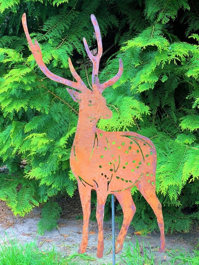 Wow, dieser Edelrost-Hirsch ist einfach der Hammer für deinen Garten! Aus robustem Metall gefertigt und komplett wetterfest - der kann das ganze Jahr draußen stehen, egal ob bei Schnee oder Sonne. Einfach aufstellen und fertig, keine Montage nötig! Jedes Stück ist ein Unikat mit einzigartiger Patina, die mit der Zeit noch charmanter wird. Perfekt für den Garten, Balkon oder als Blickfang an der Haustür. Übrigens: Immer was unterlegen, da Rost abfärben kann. Super Geschenkidee für Gartenliebhaber, Jäger oder einfach für alle, die was Besonderes suchen. Macht deinen Outdoor-Bereich sofort gemütlicher und naturverbundener! Der Hirsch ist etwa 40 cm hoch und passt perfekt zwischen Blumen oder auf die Terrasse. Ein echter Hingucker, der garantiert Gesprächsthema wird!