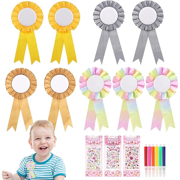 Für alle Steckenpferd-Fans! Dieses Set mit 6 Rosetten in Gold, Silber, Kupfer und Regenbogen macht jeden Hobby Horse zum Champion. Aus hochwertiger Polyesterfaser, robust und farbecht. Jede Rosette ca. 16cm lang, 8cm Durchmesser, mit leerer Mitte für eigene Gestaltung. Perfekt für Wettbewerbe, Spiel oder Deko. Einfach anstecken und dein Pferd glänzt. Tolle Überraschung für kleine und große Reiter - hol dir die Rosetten und feier jeden Sieg!