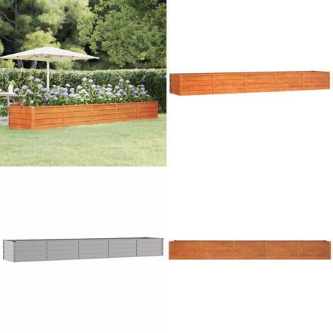 Offener Boden für gute Drainage, sichere abgefaltete Kanten, stabiler Rahmen. Viel Platz für Gemüse, Kräuter, Blumen. Passt auf Erde, Rasen oder Terrasse. Rostet natürlich - wird mit der Zeit immer schöner!