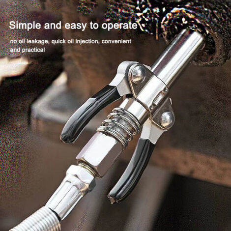 Professionelles Werkzeug für alle die mit Maschinen und Fahrzeugen zu tun haben! Diese Hochdruck-Fettpresse aus rostfreiem Edelstahl ist ein echter Alleskönner. Passt an manuelle, elektrische und pneumatische Fettpumpen - einfach universell einsetzbar. Das Doppelgriff-Design gibt perfekten Halt und die verdickte Verriegelungsplatte mit sechs Blättern klemmt bombenfest. Einfach aufdrücken, schon ist sie installiert - die hochelastische Feder macht das Abnehmen genauso leicht. Der gummiere Griff liegt super in der Hand und rutscht nicht, auch nicht bei schmierigen Fingern. Kompatibel mit allen gängigen Düsen von M6 bis M14, egal ob gerade, 45-Grad oder 90-Grad - alles kein Problem! Im Lieferumfang ist sogar ein 400mm Federschlauch dabei. Rostfrei, langlebig und einfach unverzichtbar für jede Werkstatt!