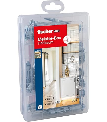 Bohrst du oft in Gipskartonwände und brauchst sichere Befestigungen? Dieses Hohlraumdübel-Set macht's dir leicht! Enthalten sind eine praktische Montagezange und 34 Metall-Dübel mit passenden Schrauben in drei Größen. Damit befestigst du sicher Spiegel, Regale, Bilder oder Handtuchhalter in Hohlwänden. Die Dübel spreizen sich auf und halten bombenfest - bis zu 30 kg Last! Die Zange hat einen ergonomischen Griff und macht die Montage zum Kinderspiel. Einfach Loch bohren, Dübel rein, Zange ansetzen und zudrücken - fertig! Rostfrei und wiederverwendbar. Perfekt für Heimwerker, die nicht ständung neue Dübel kaufen wollen. Mit diesem Set bist du für alle Befestigungen in Hohlwänden gerüstet!